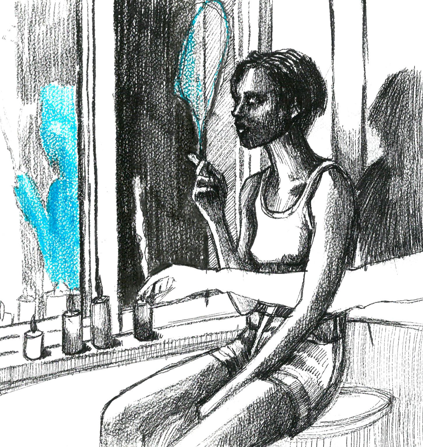 technika mieszana (akwarela, ołówek, cienkopisy, tusz), papier, 46 x 34 cm,