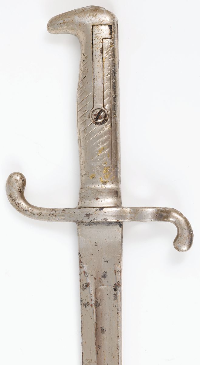 Stal, biały metal, mosiądz, skóra, dł. cłk. W pochwie 66 cm, bez pochwy 60 cm, głowni 47 cm