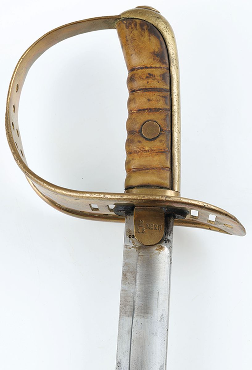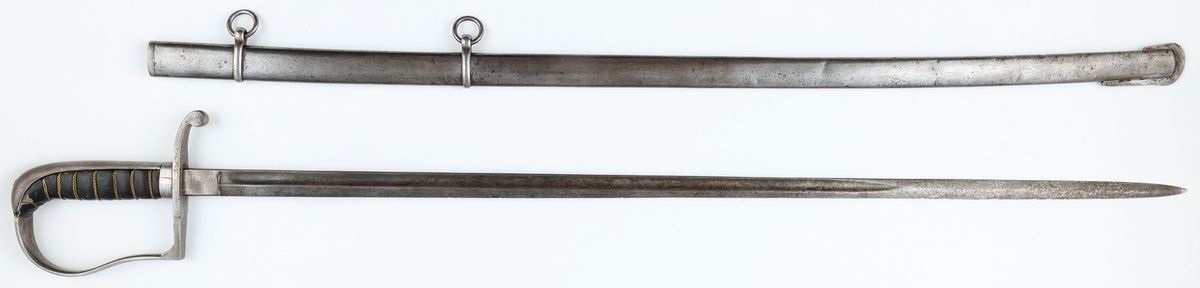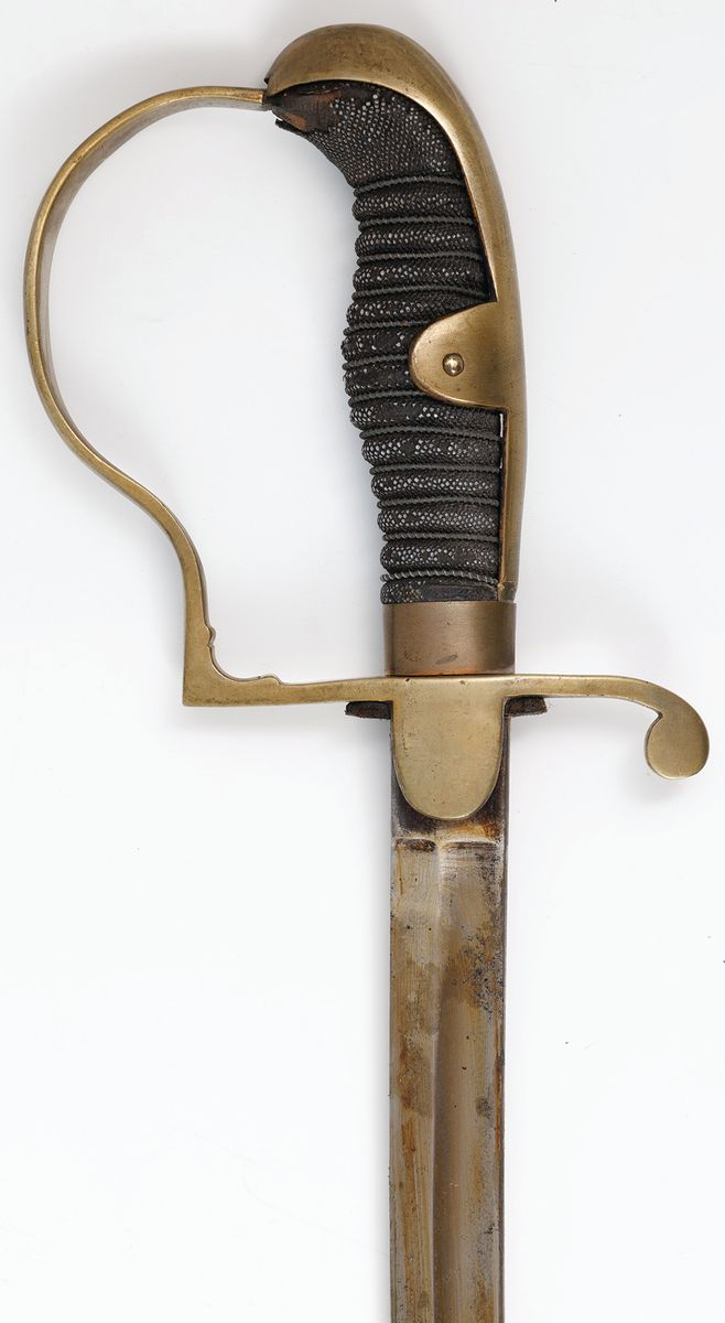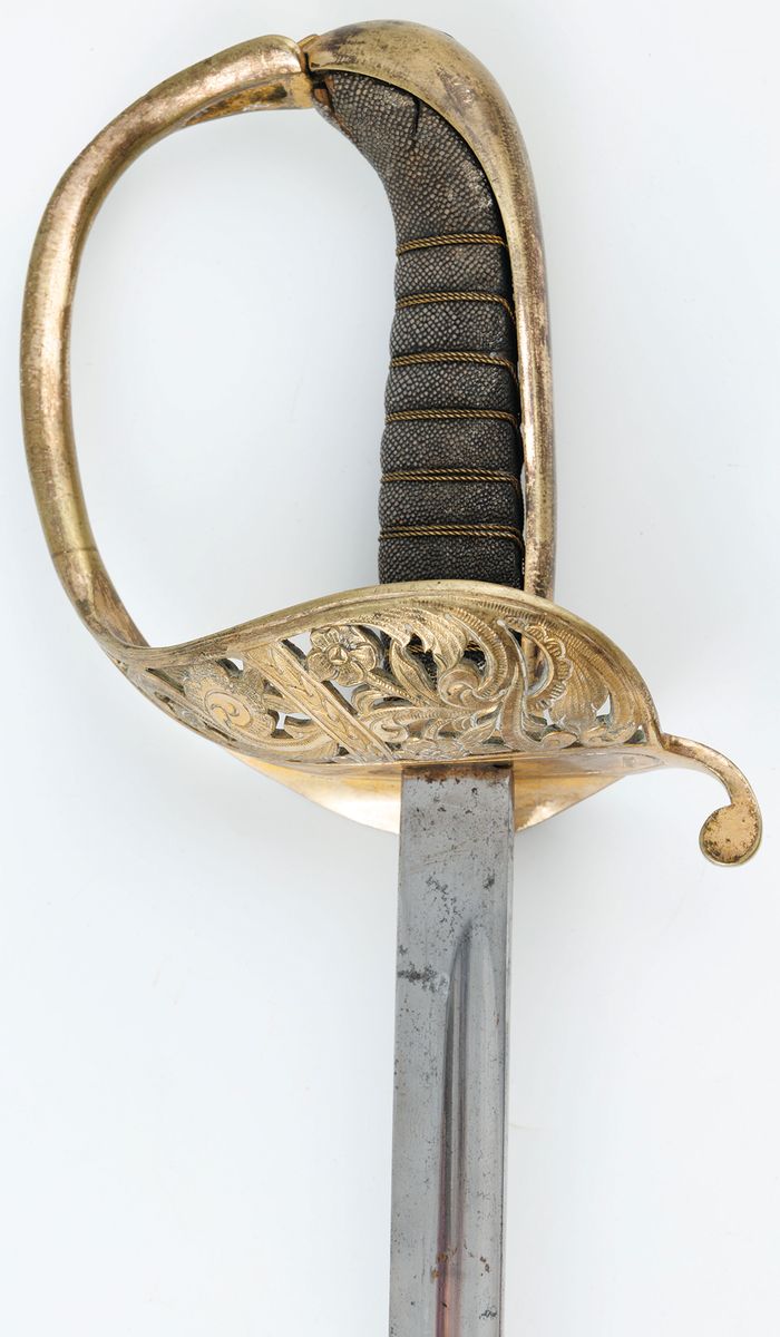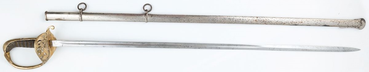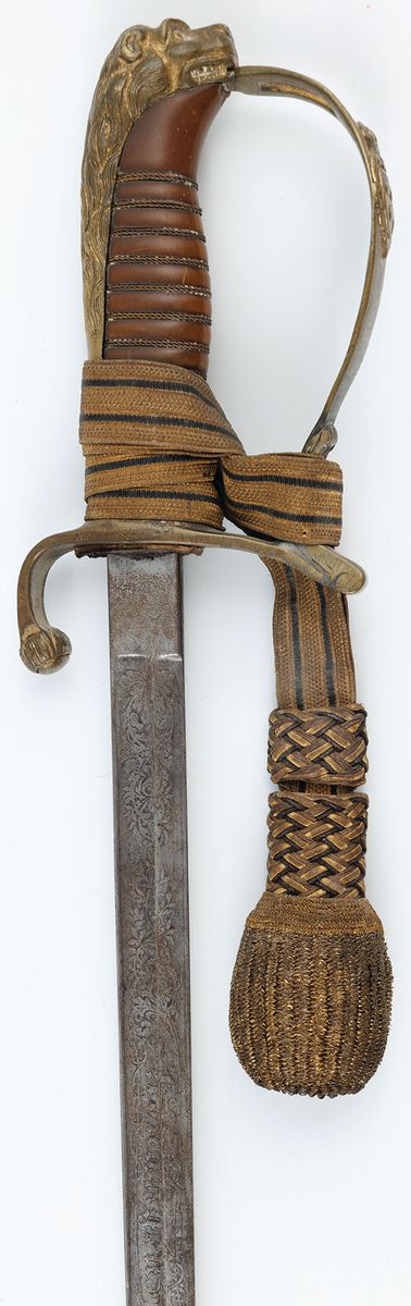 Stal, mosiądz, skóra, jedwab (temblak), dł. cłk. w pochwie 102 cm, bez pochwy 95,5 cm, głowni 82 cm