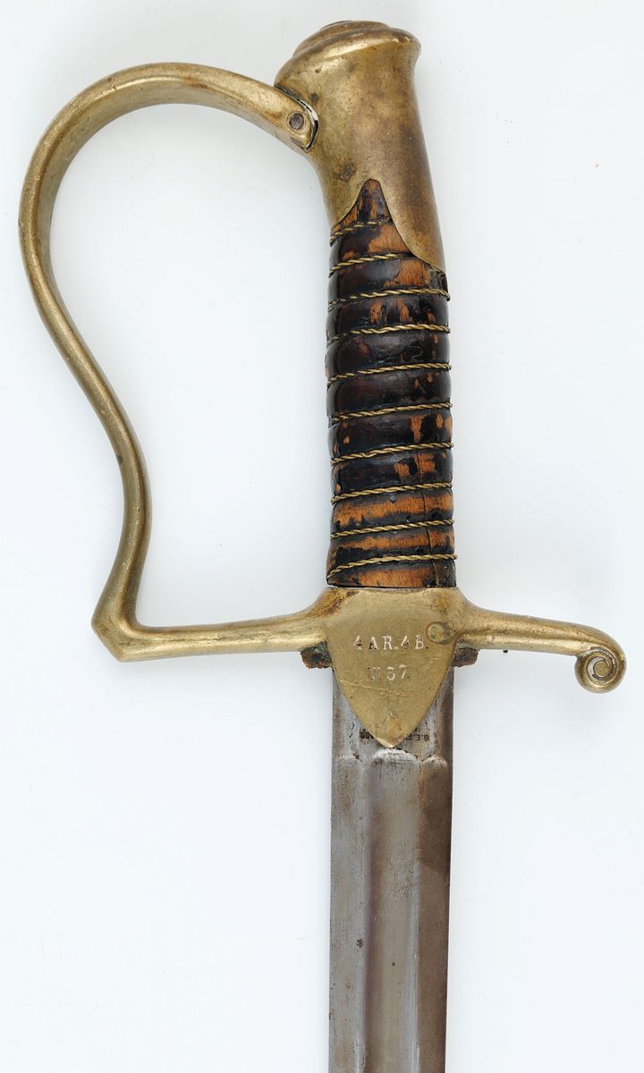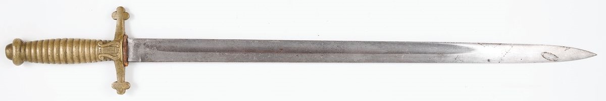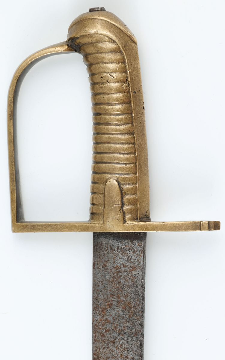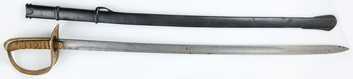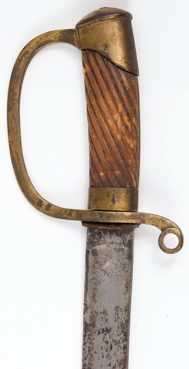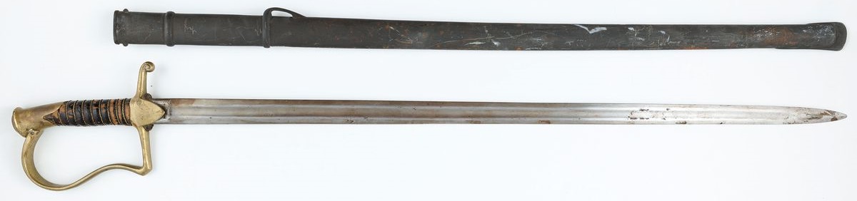 Stal, mosiądz, drewno, dł. cłk. w pochwie 98 cm, bez pochwy 95 cm, głowni 80 cm