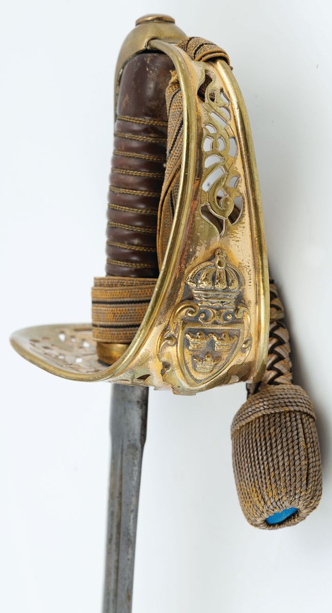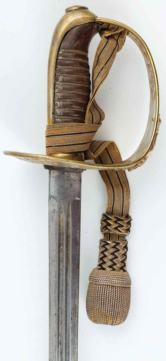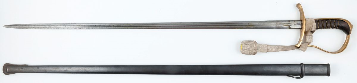 Stal, mosiądz, złocenie, bakelit, jedwab (temblak), dł. cłk. w pochwie 96 cm, bez pochwy 91 cm, głowni 77,5 cm