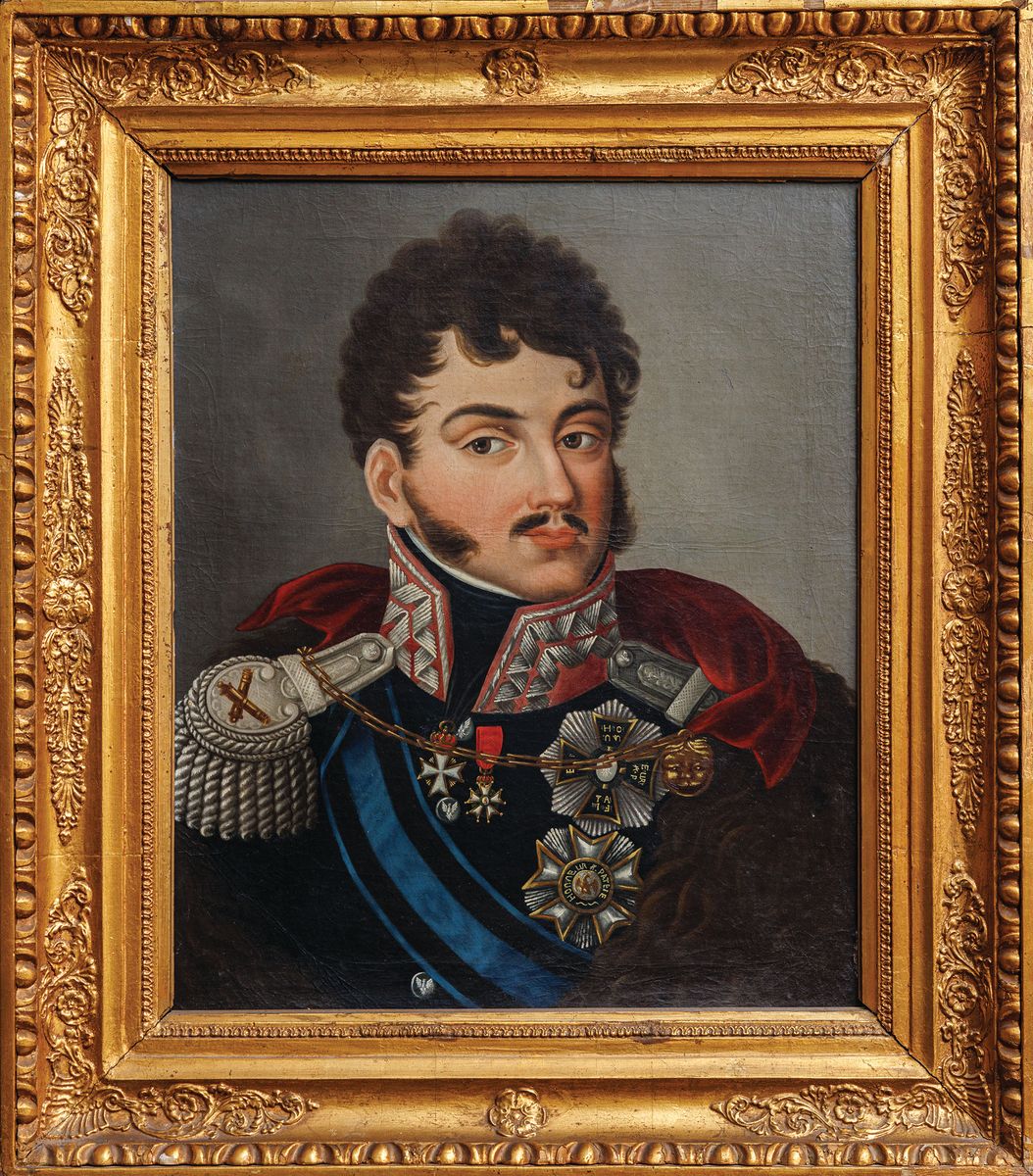 Portret powtarza w dużym stopniu portret księcia z grafiki autorstwa Louisa René Letronne z 1821 r. z dodanymi 2 medalami.