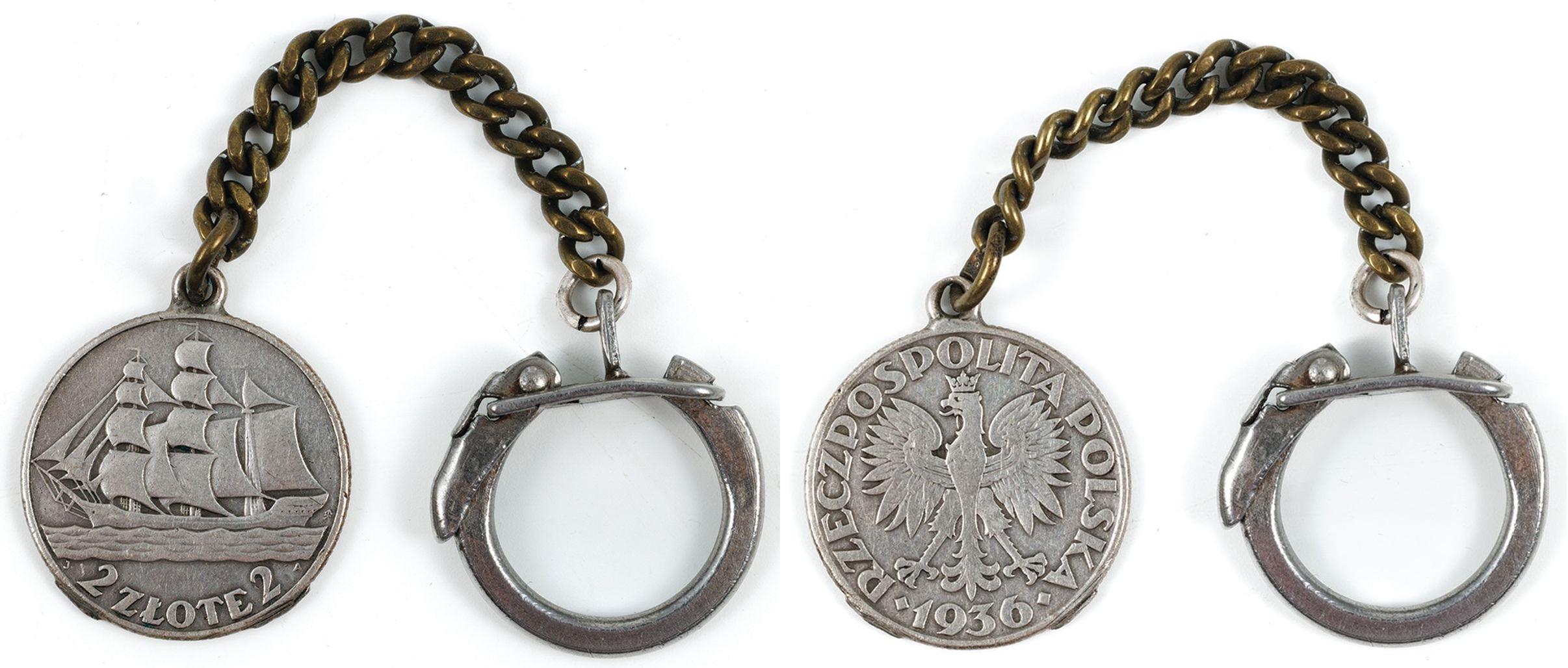Stal, brąz, srebrna moneta 2 zł, 1936, żaglowiec