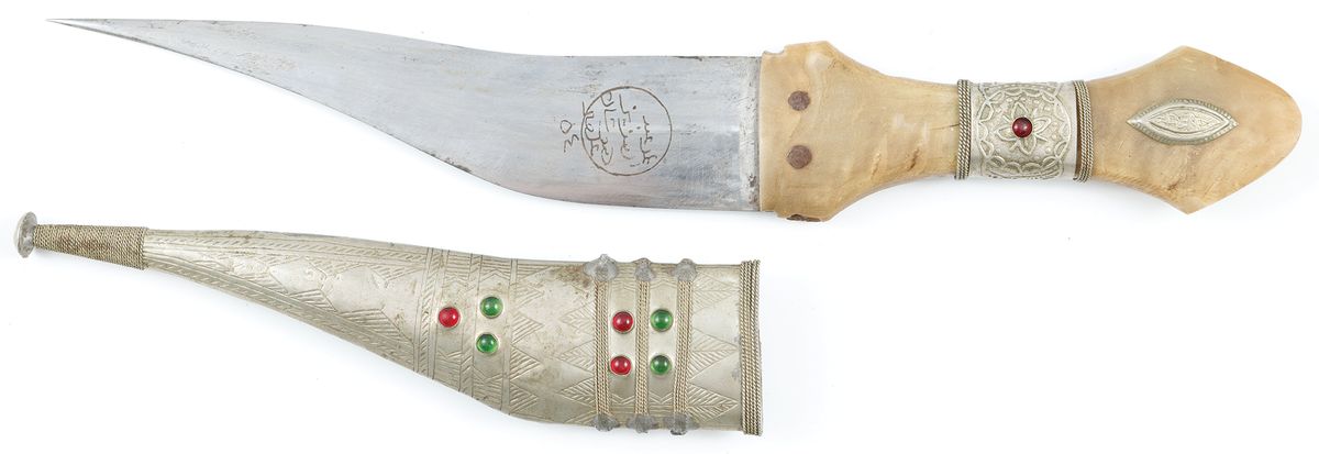 Stal, róg, biały metal, barwne szkło, dł. cłk. w pochwie 30 cm