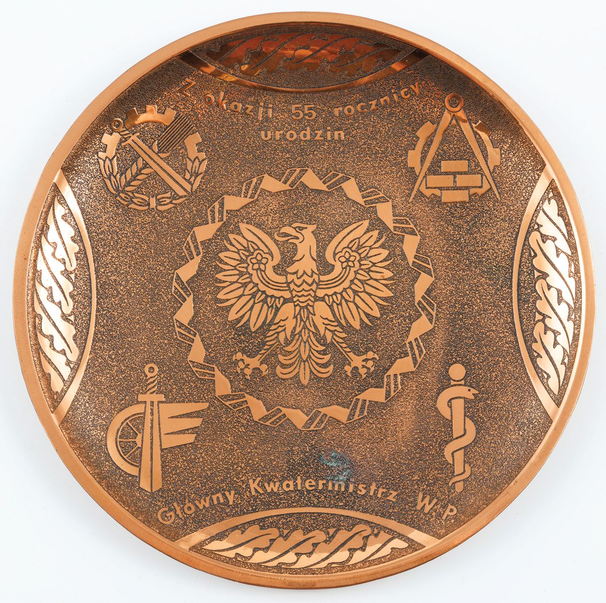 Miedź, emalia; 46 x 29 mm