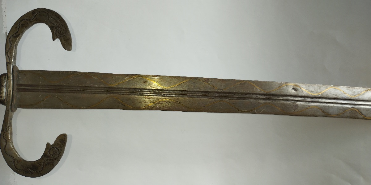 Stal, mosiądz, róg. dł. cłk. 74 cm, głowni 60 cm
