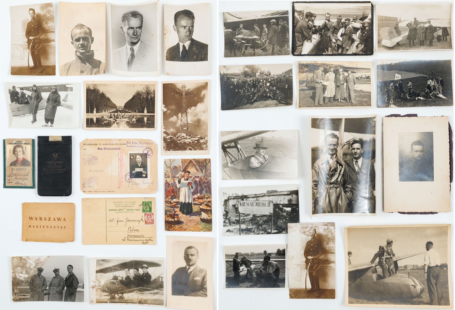 21 zdjęć o tematyce lotniczej , II RP: konstruktorzy (m.in. Szczepan Grzeszczyk), piloci (m.in. malarz Tadeusz Pruszkowski w samolocie, Zygmunt Laskowski), wojskowi