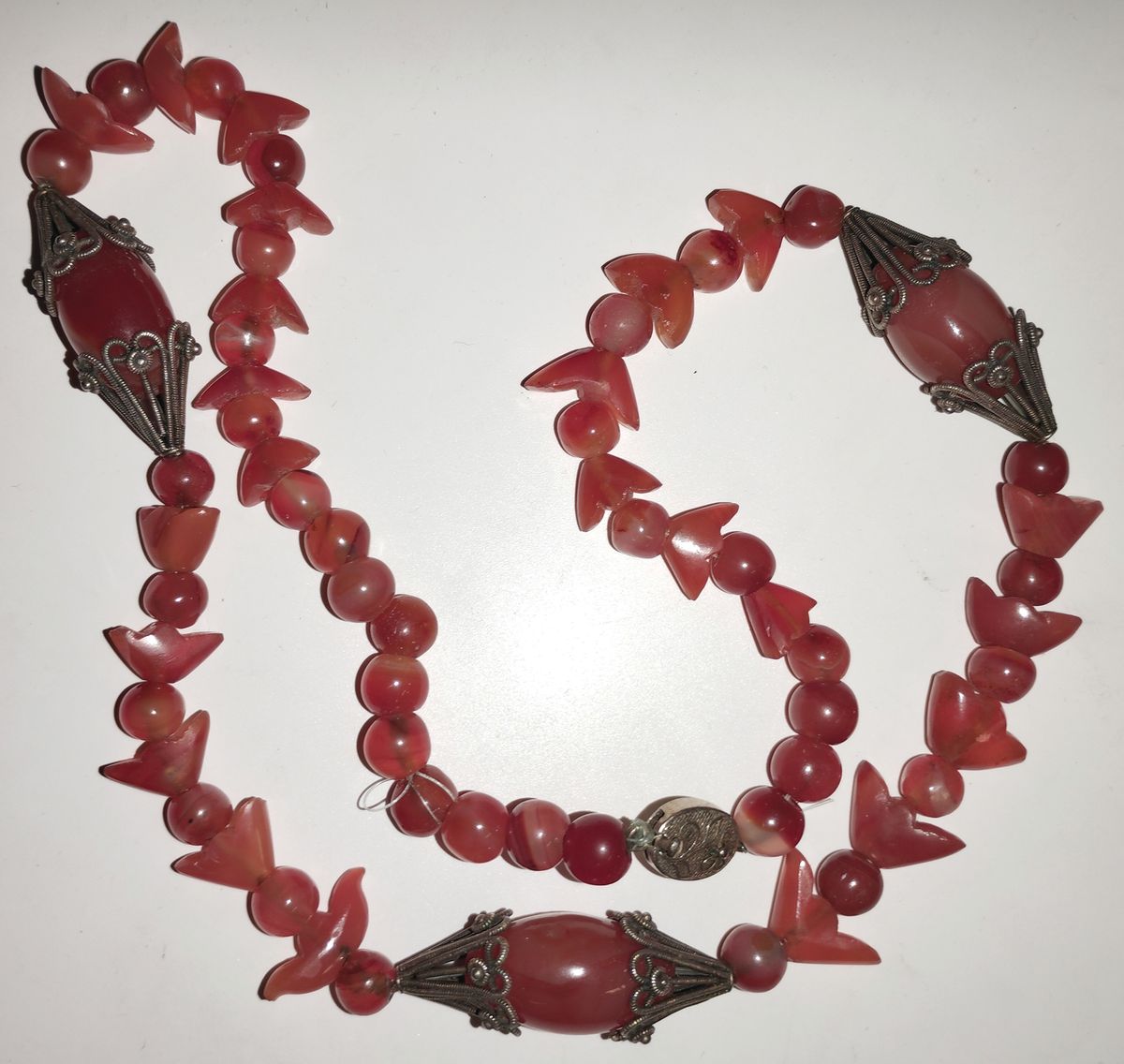 Różowy agat, srebro, pr. 3, waga cłk. 85 g, dł. 59 cm