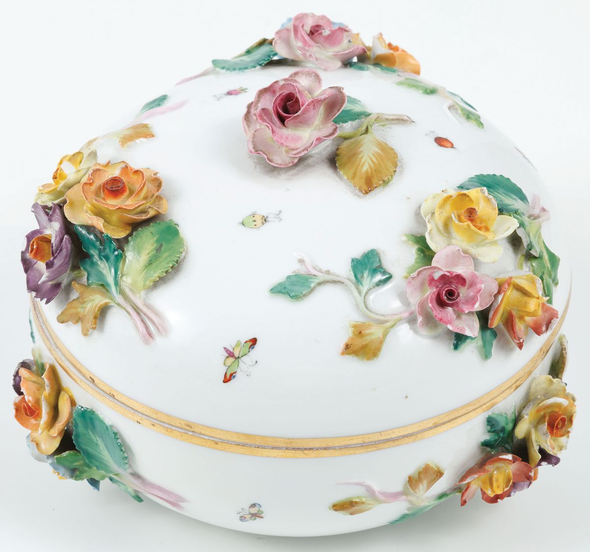 Porcelana, farby naszkliwne, złocenie, wys. 10, śr. 13 cm