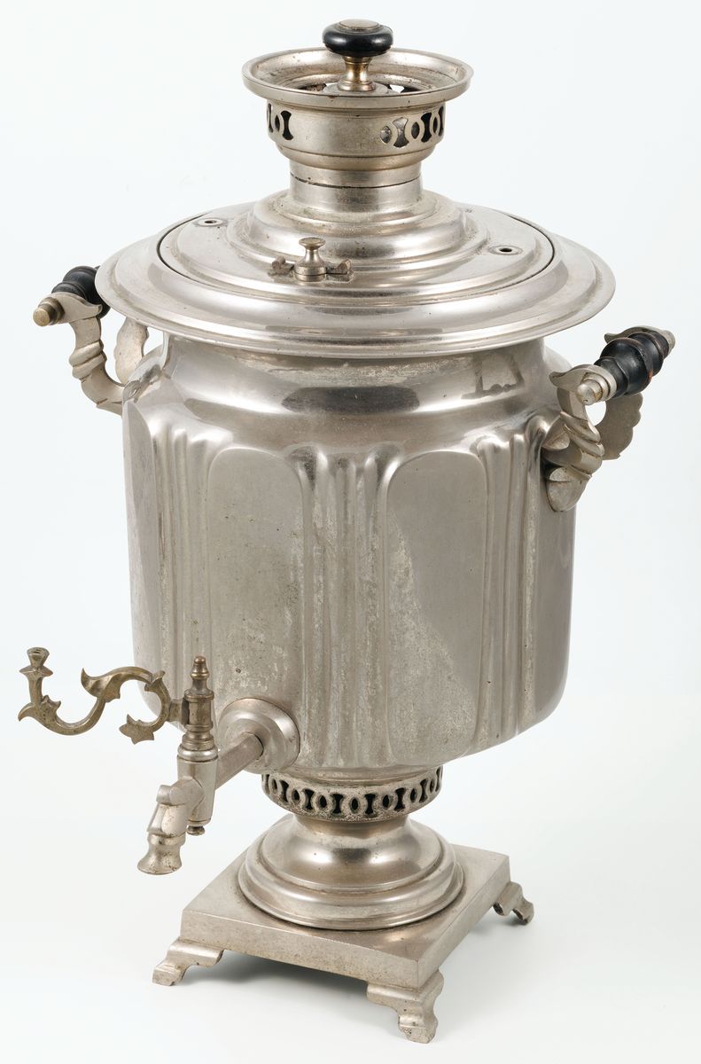 Mosiądz niklowany, drewno (uchwyty), wys. 49 cm