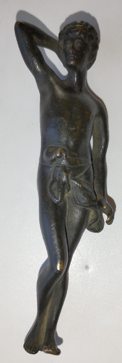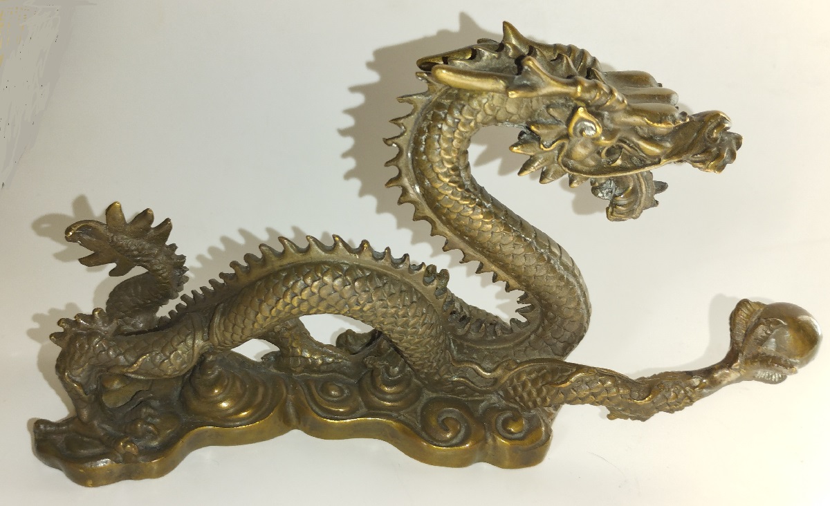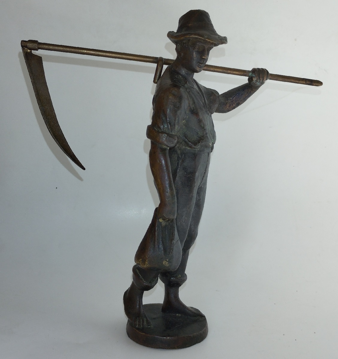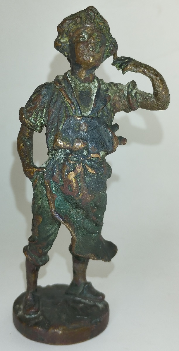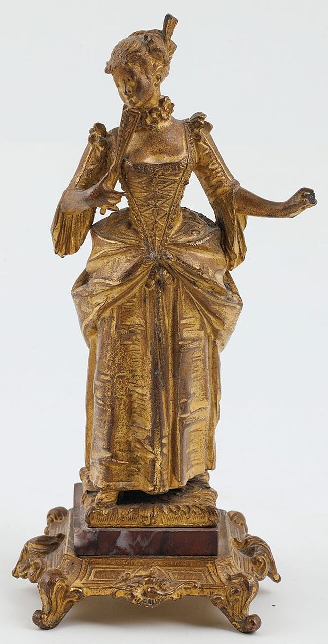 Stop metali brązowiony, czerwony marmur,wys. 17,5 cm