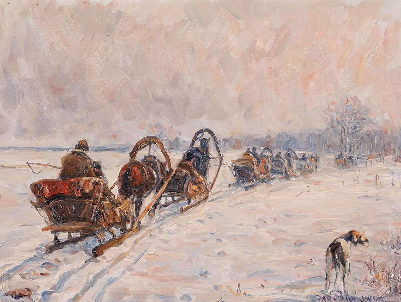 Sygnowany p.d.: Jan Pawłowski; na odwrocie: Zima 1984