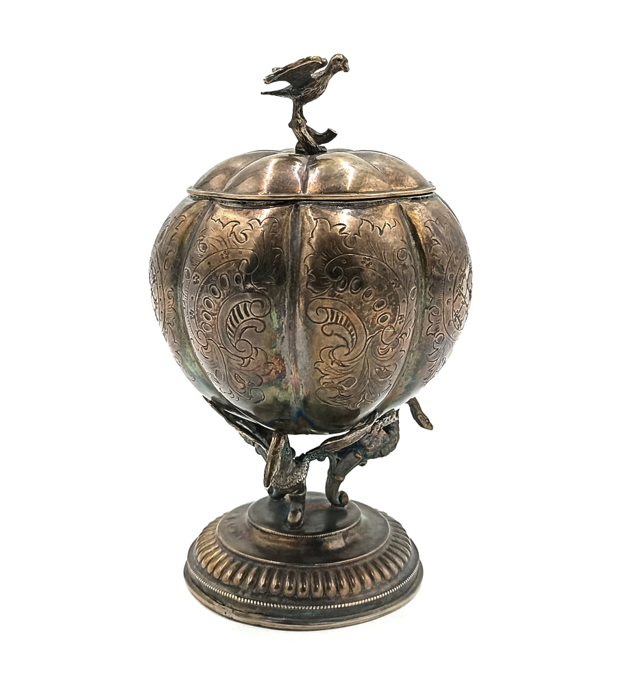 srebro pr. 800, 962,7 g, grawerka, wys. 39,5 cm, zagniecenia