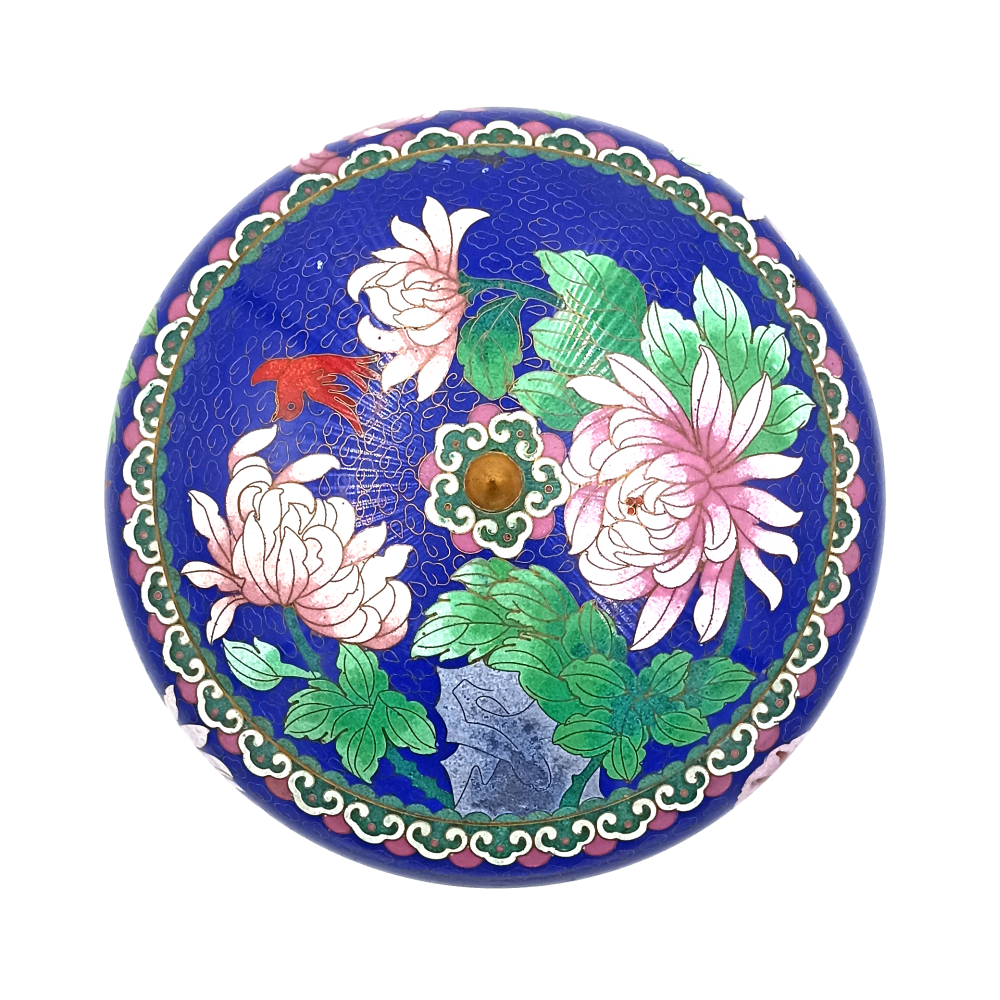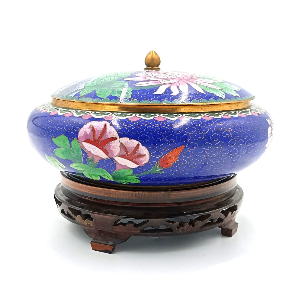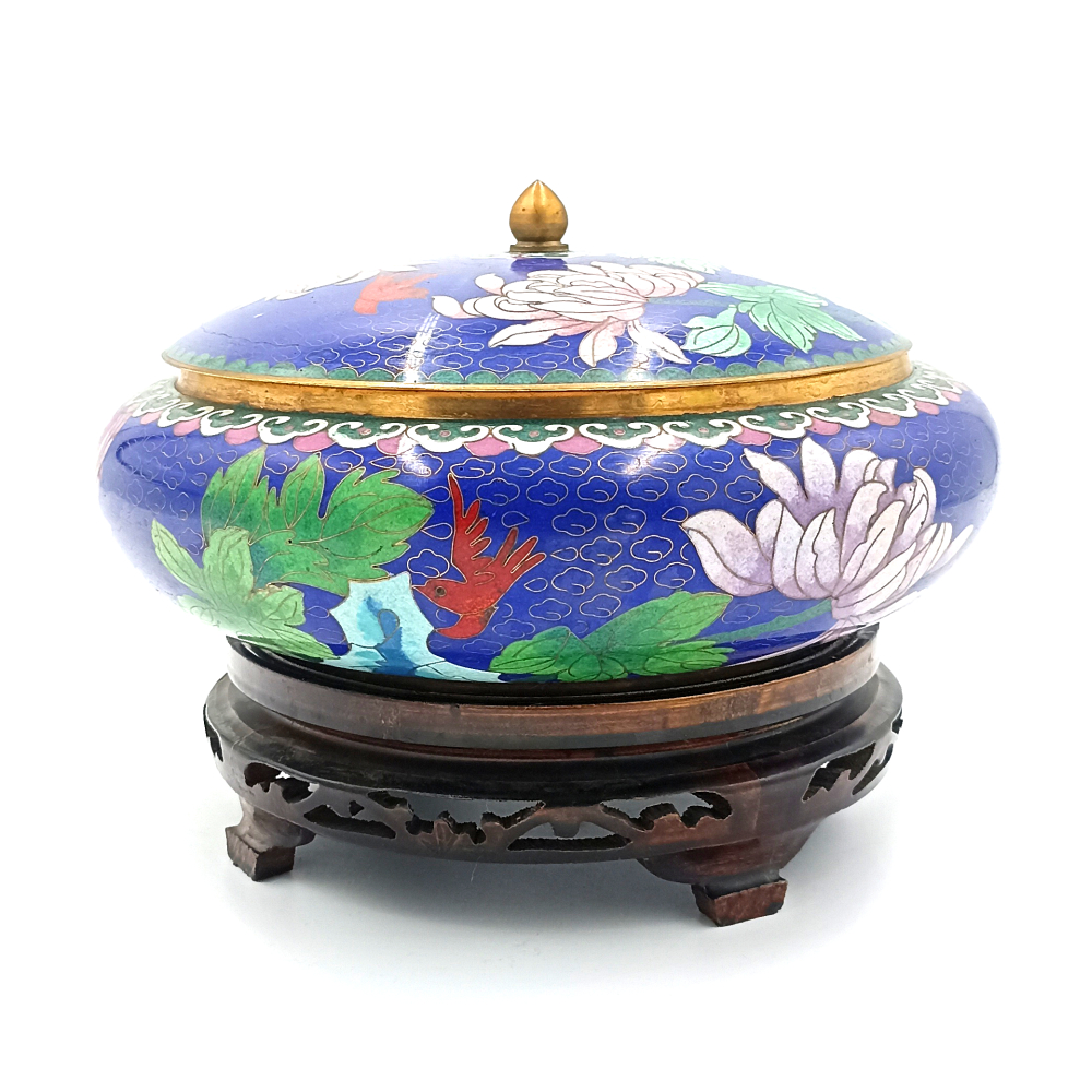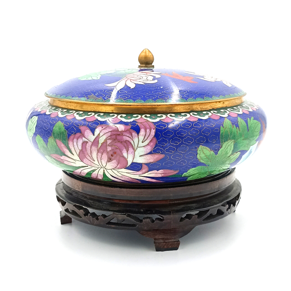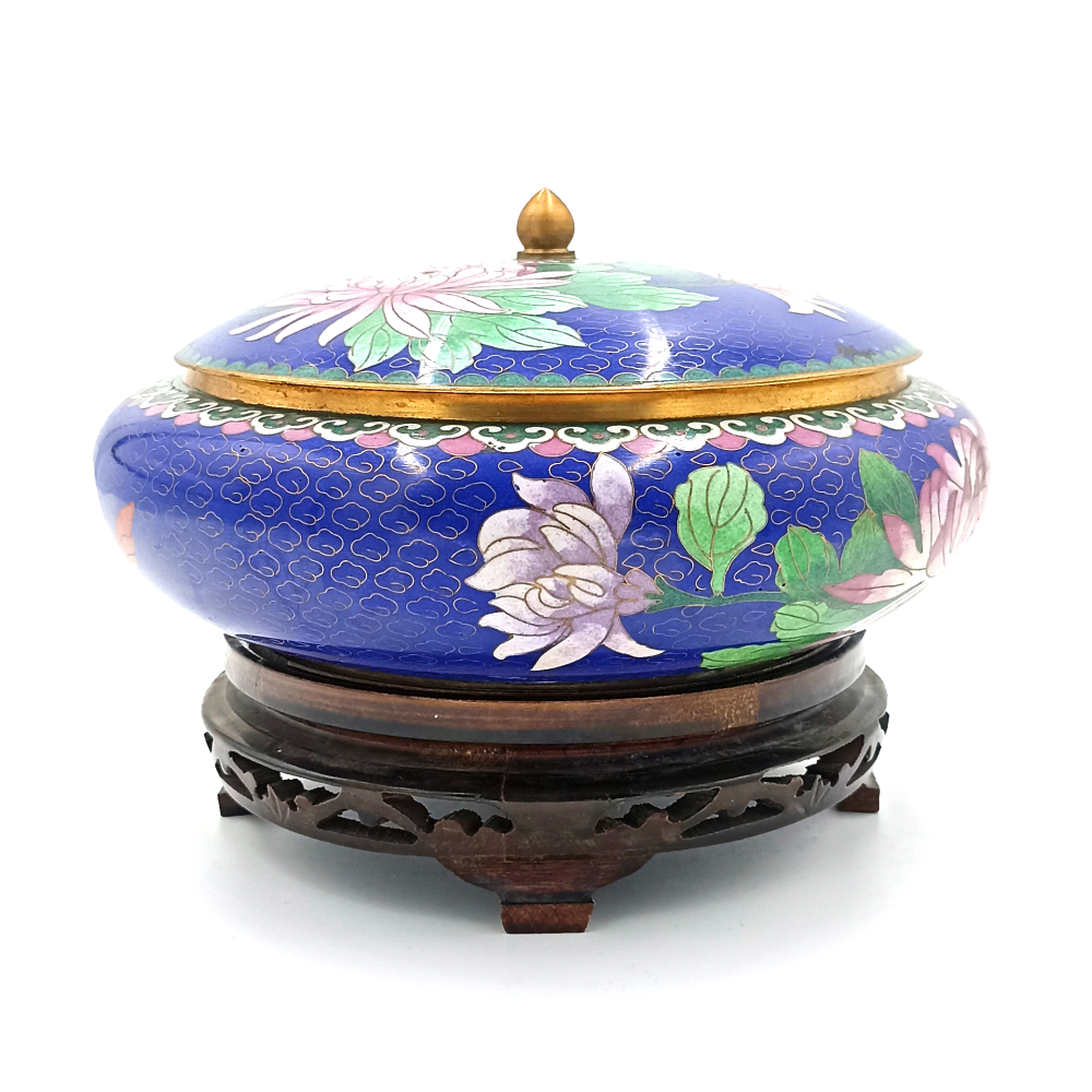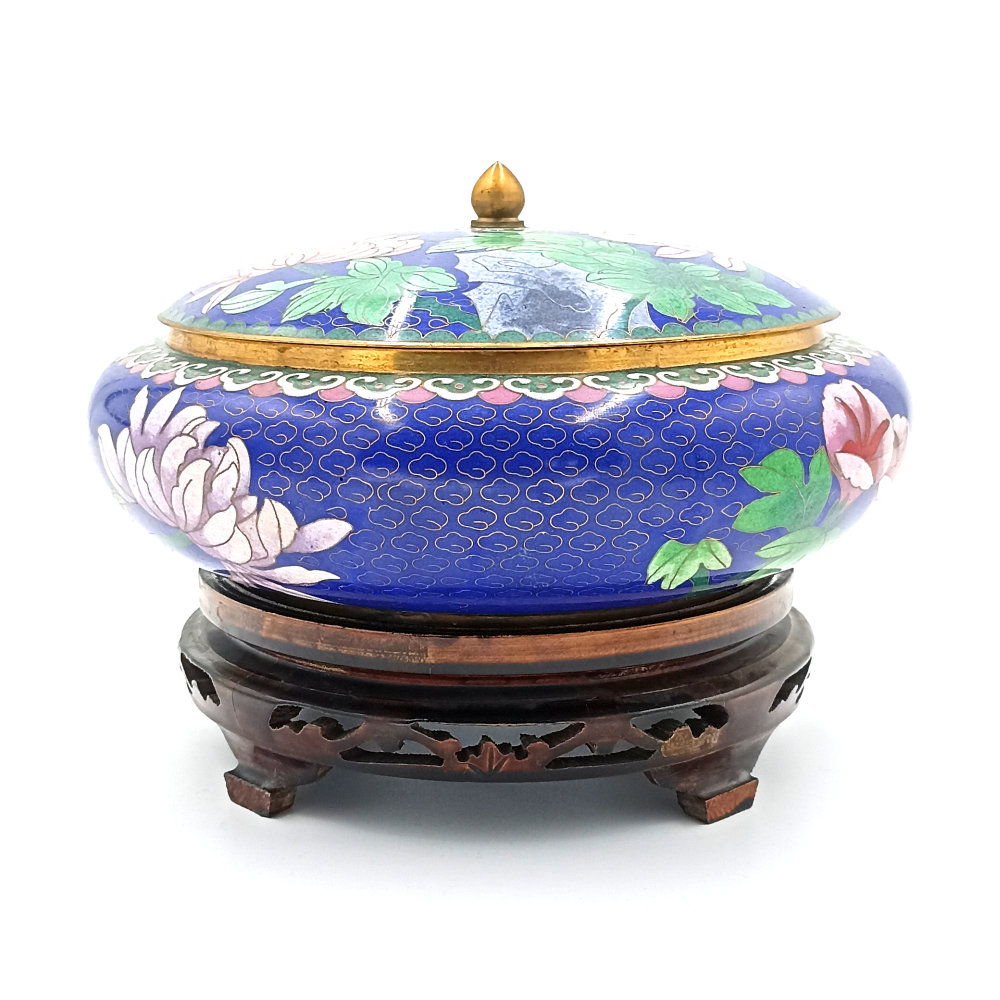 metal, emalia, drewno wys. z podstawą 16,5 cm, śr. 20 cm