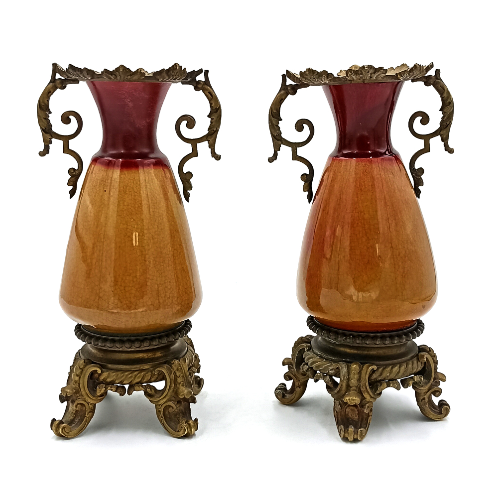 brąz, ceramika malowana, szkliwiona, wys. 21,5 cm