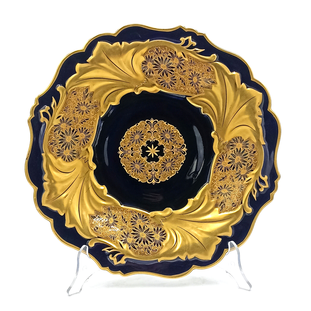 porcelana biała, kobalt, złocenie, śr. 32 cm
