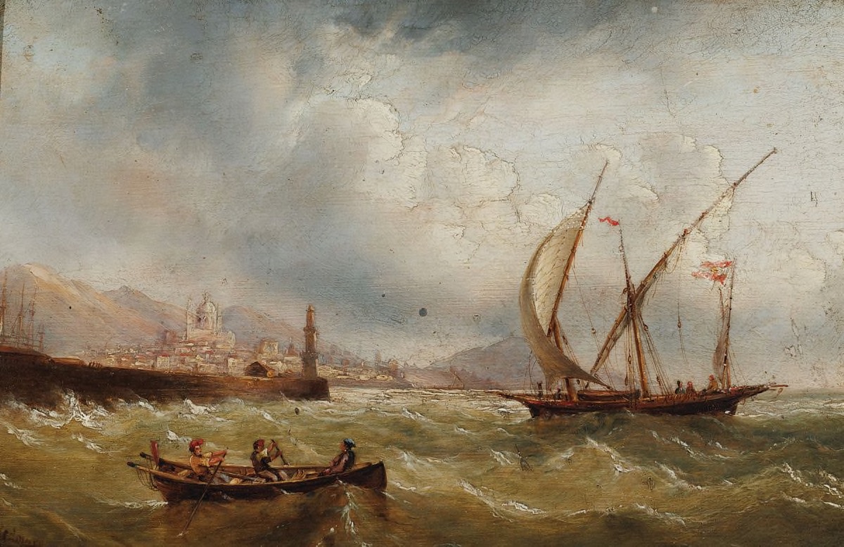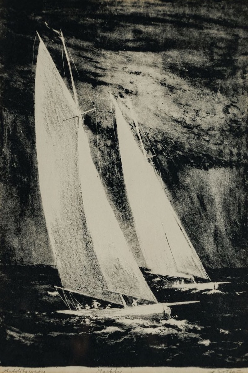 Sygnowany ołówkiem pod ryciną: Autolitografia Jachty A.Sołtan