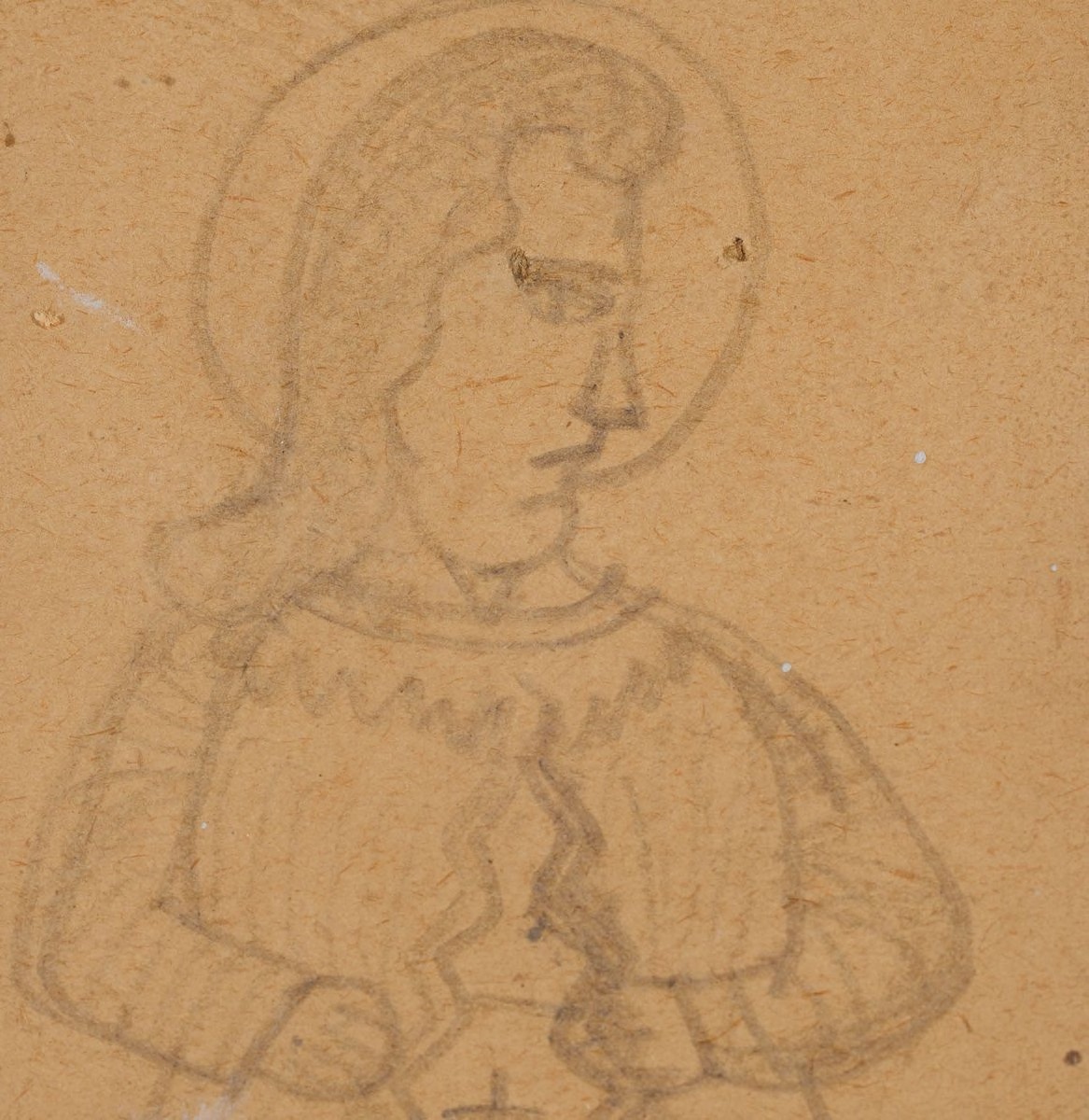 Ołówek, papier beżowy; 75 x 70 mm (w świetle p-p)