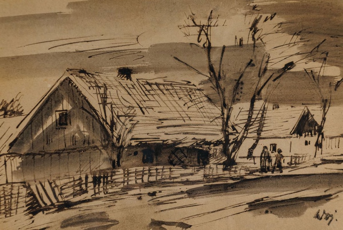 Tusz, piórko, lawowanie, papier; 32 x 23 cm (w świetle p-p)