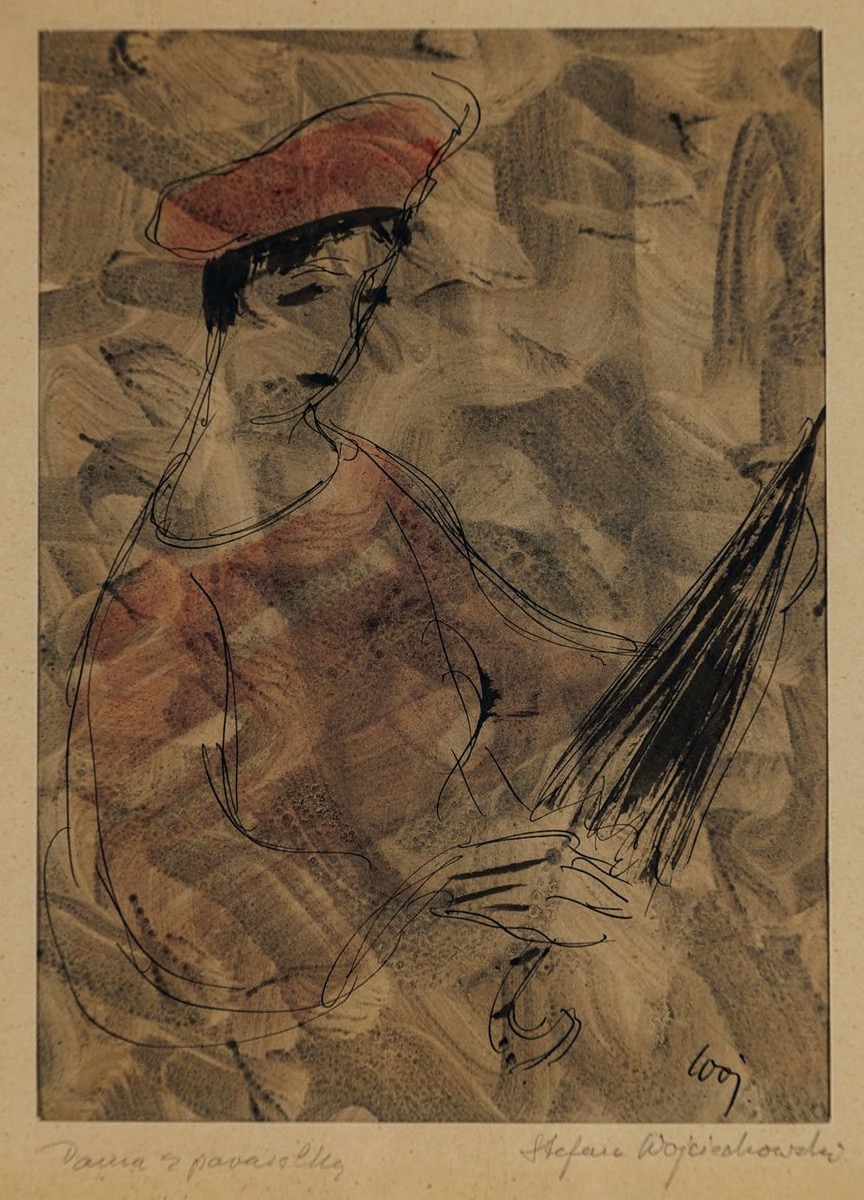 Sygnowany p.d.: woj.; na p-p: Dama z parasolką Stefan Wojciechowski