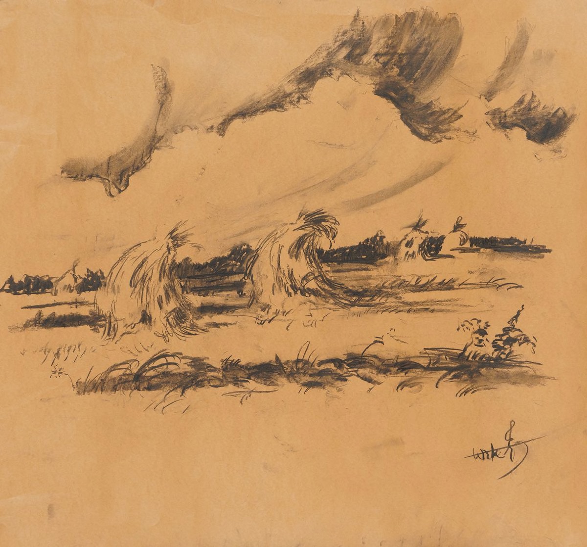Sepia, piórko, lawowanie, papier; 18 x 27 cm (w świetle p-p)