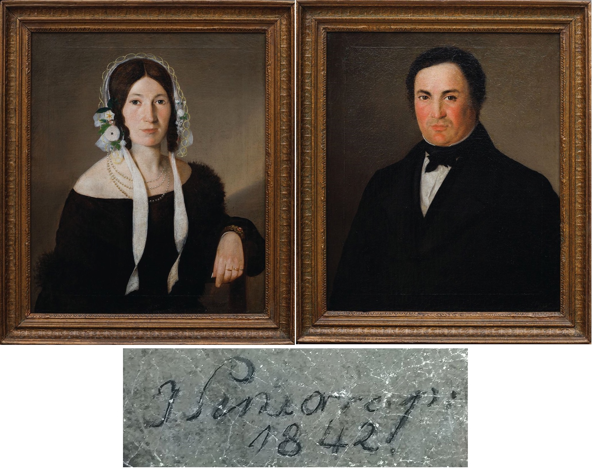 Sygnowane: portret kobiecy sygnowany śr. d.; męski p.d.: J. Piniare p: / 1842