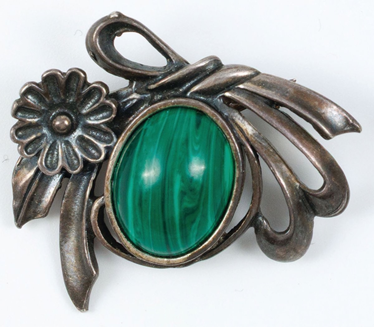 Srebro, malachit, waga 6 g, dł. 32 mm