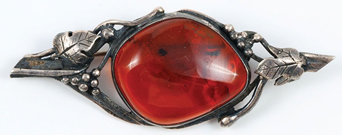 Srebro, bursztyn, waga 7,1 g, dł. 55 mm