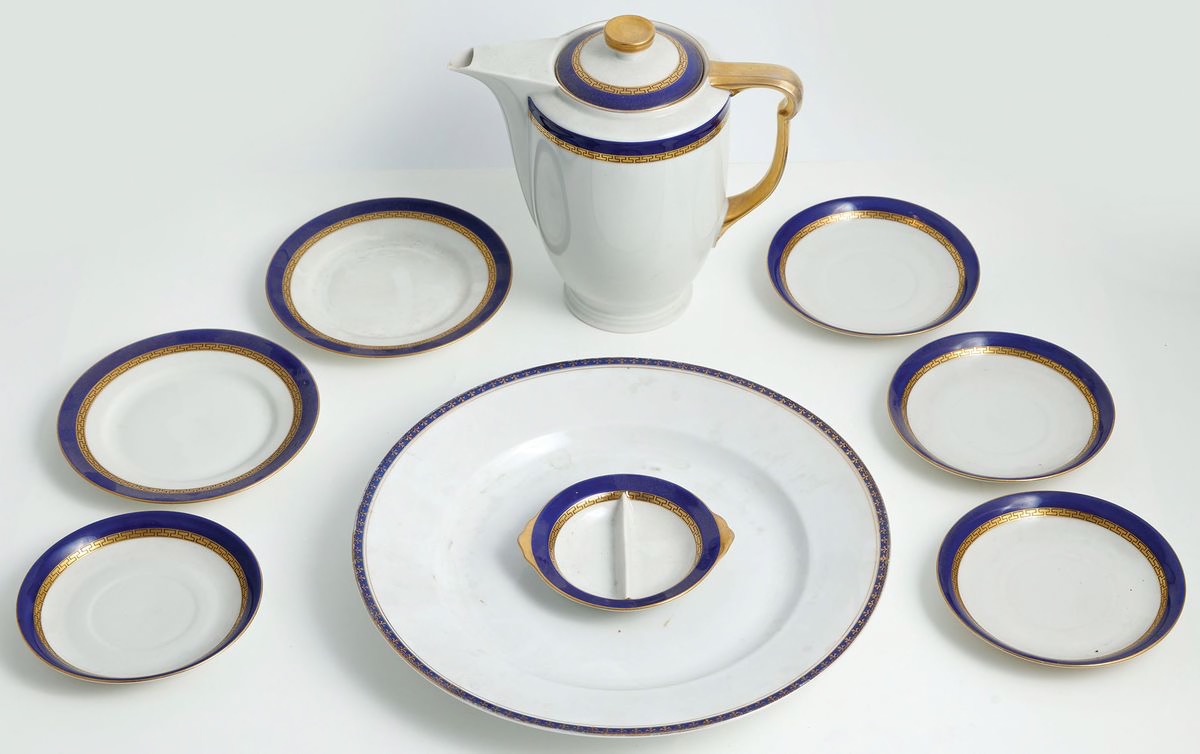 Porcelana, kobalt podszkliwny, złocenie, w składzie:
