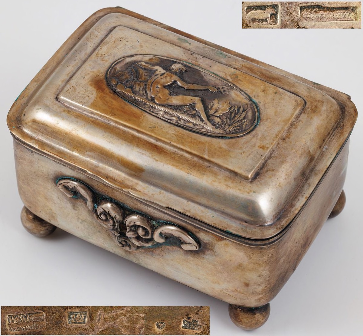 Srebro, próba 12; 9 x 14,5 x 10 cm, z zamkiem