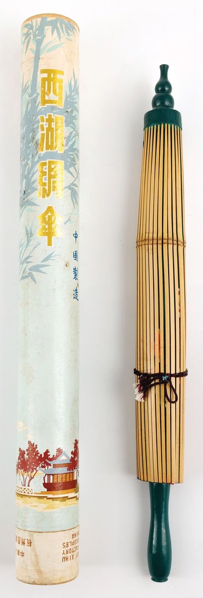 Drewno, bambus, jedwab, haft, dł. 54 cm, pudełko