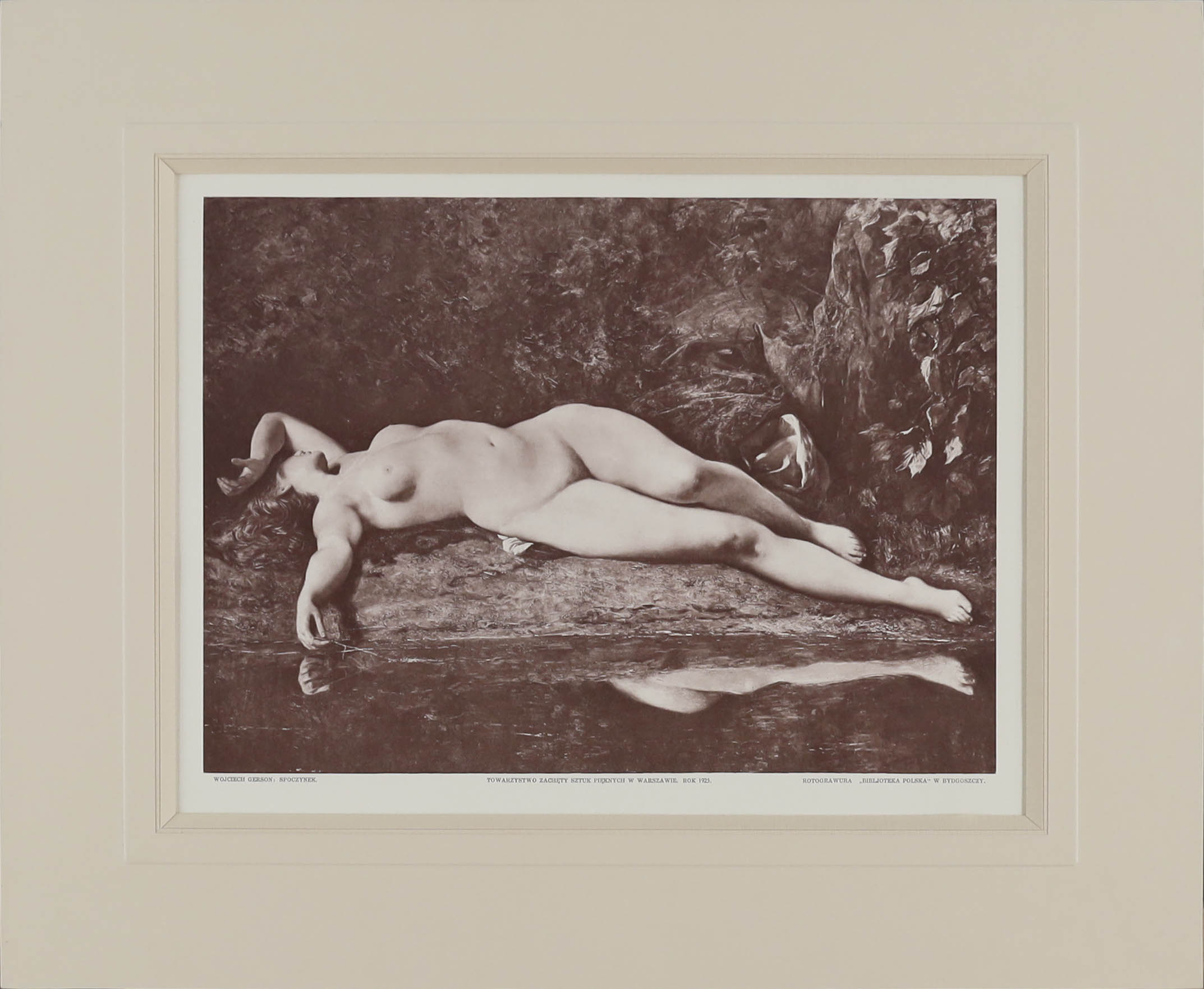 opisany u dołu: Wojciech Gerson: Spoczynek, Towarzystwo Zachęty Sztuk Pięknych w Warszawie. Rok. 1925. Rotograwura "Bibljoteka Polska" w Bydgoszczy.