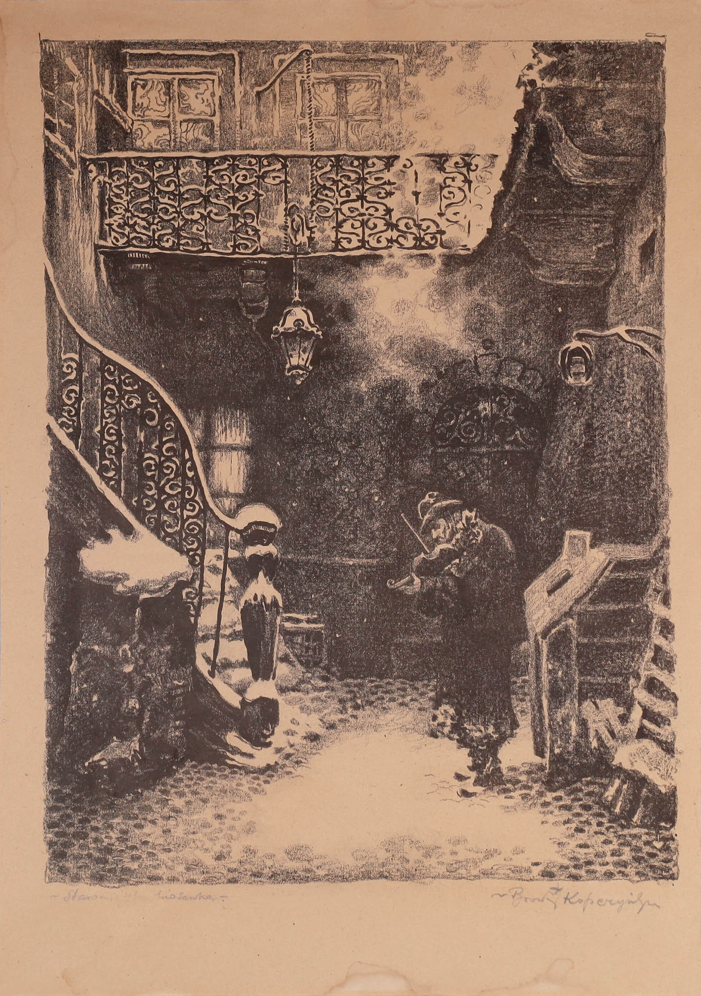 sygn. i opisany u dołu: Staromiejska piosenka, Bronisław Kopczyński