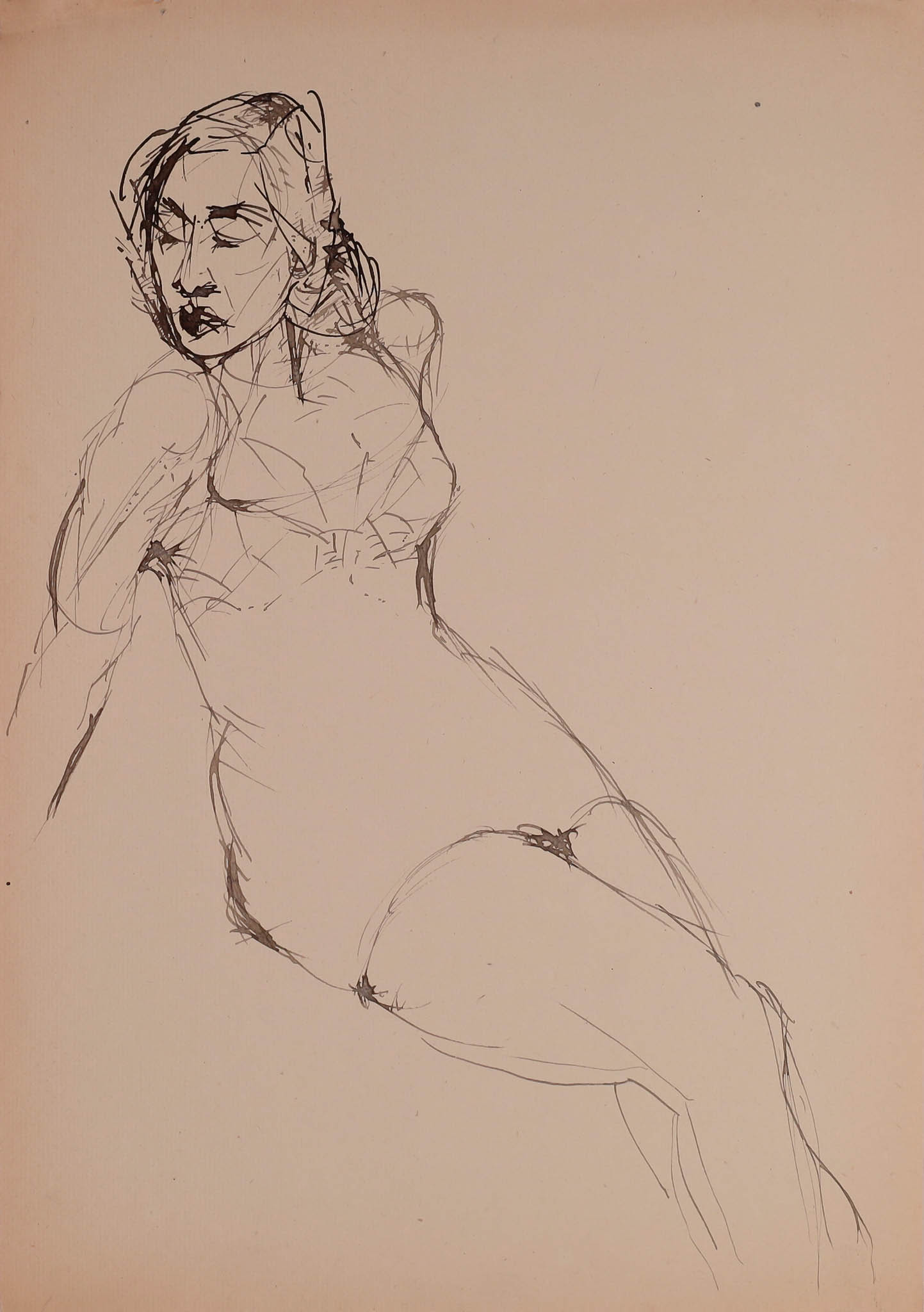 tusz, piórko, papier, 24,5 x 18 cm; (w świetle oprawy);