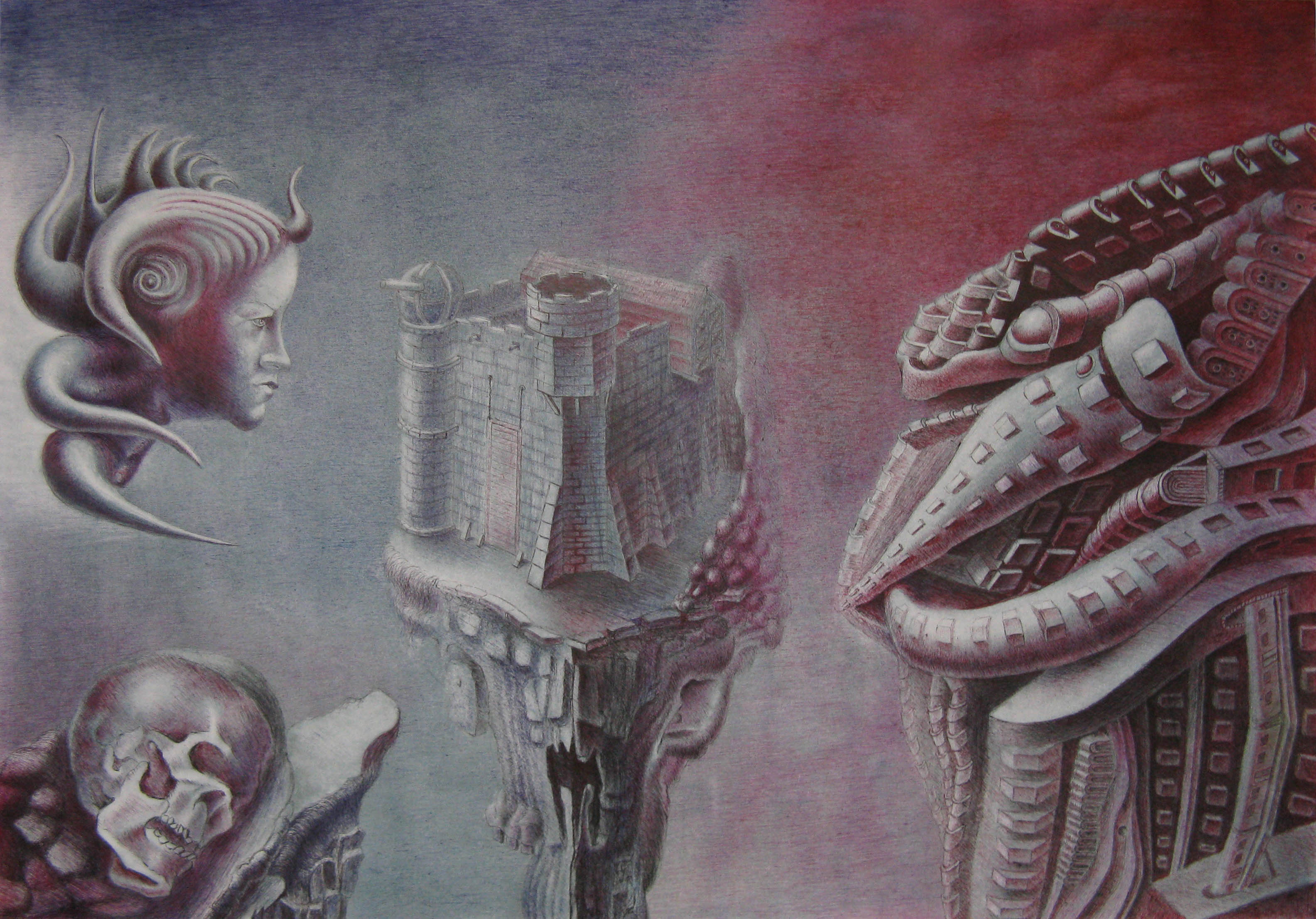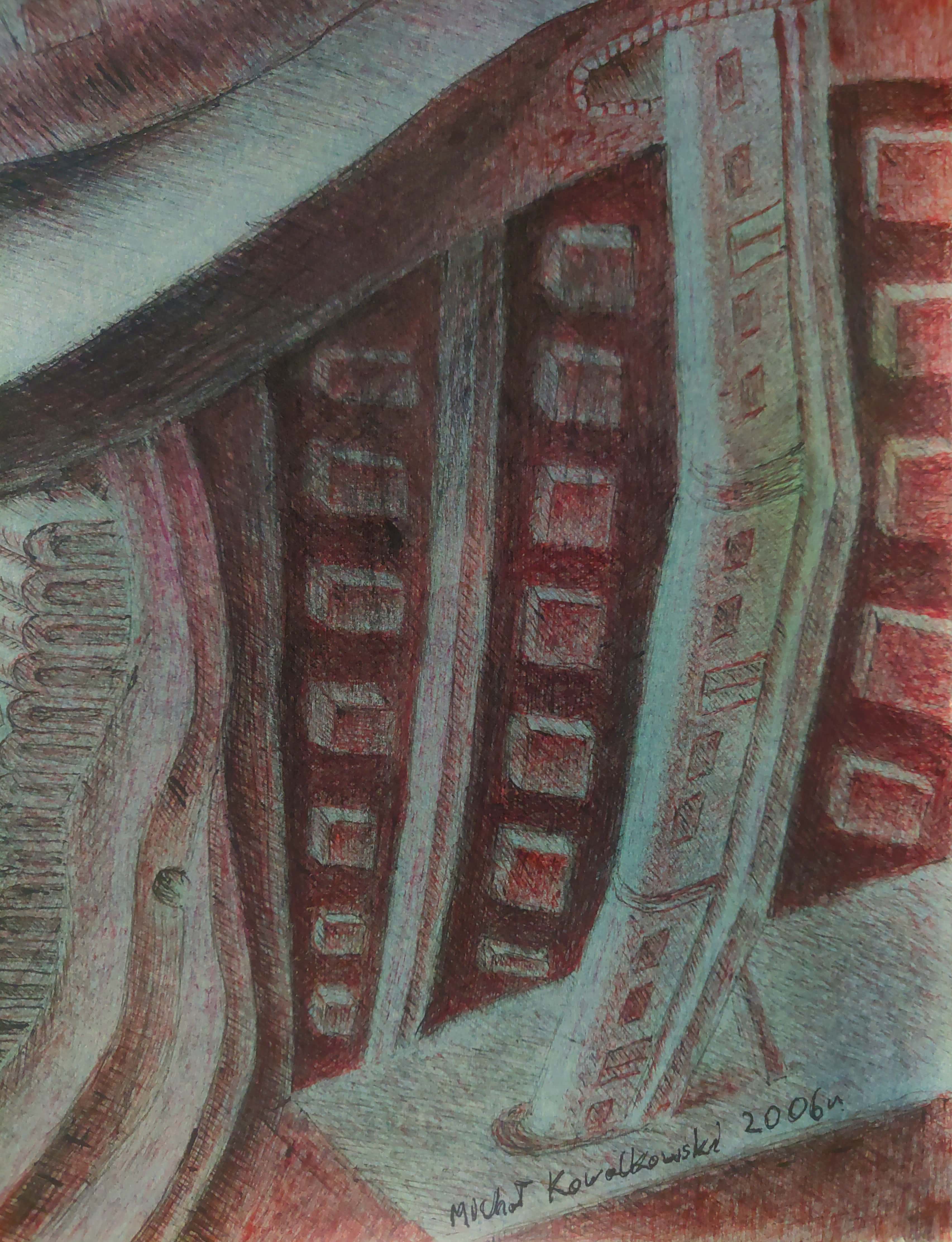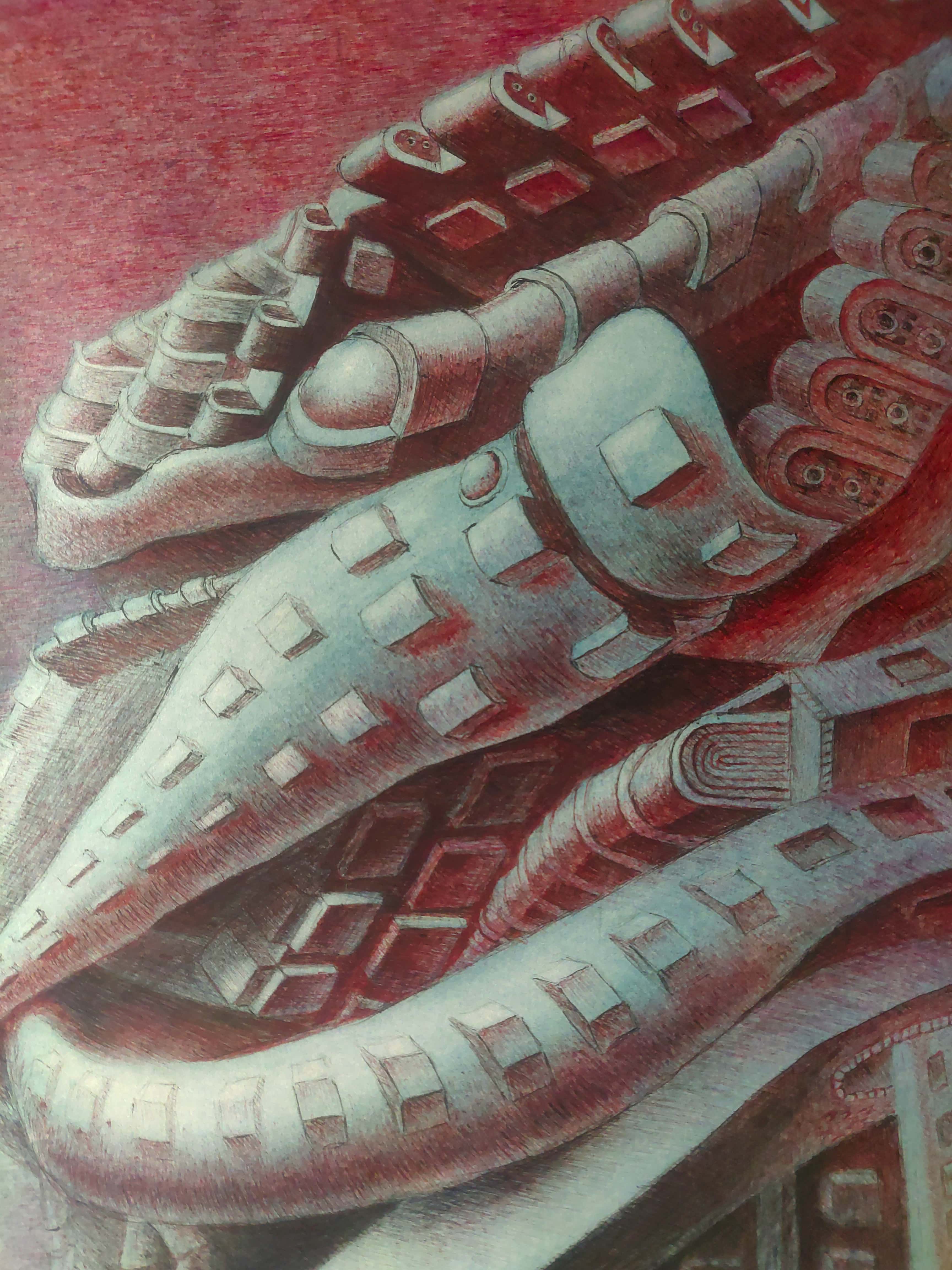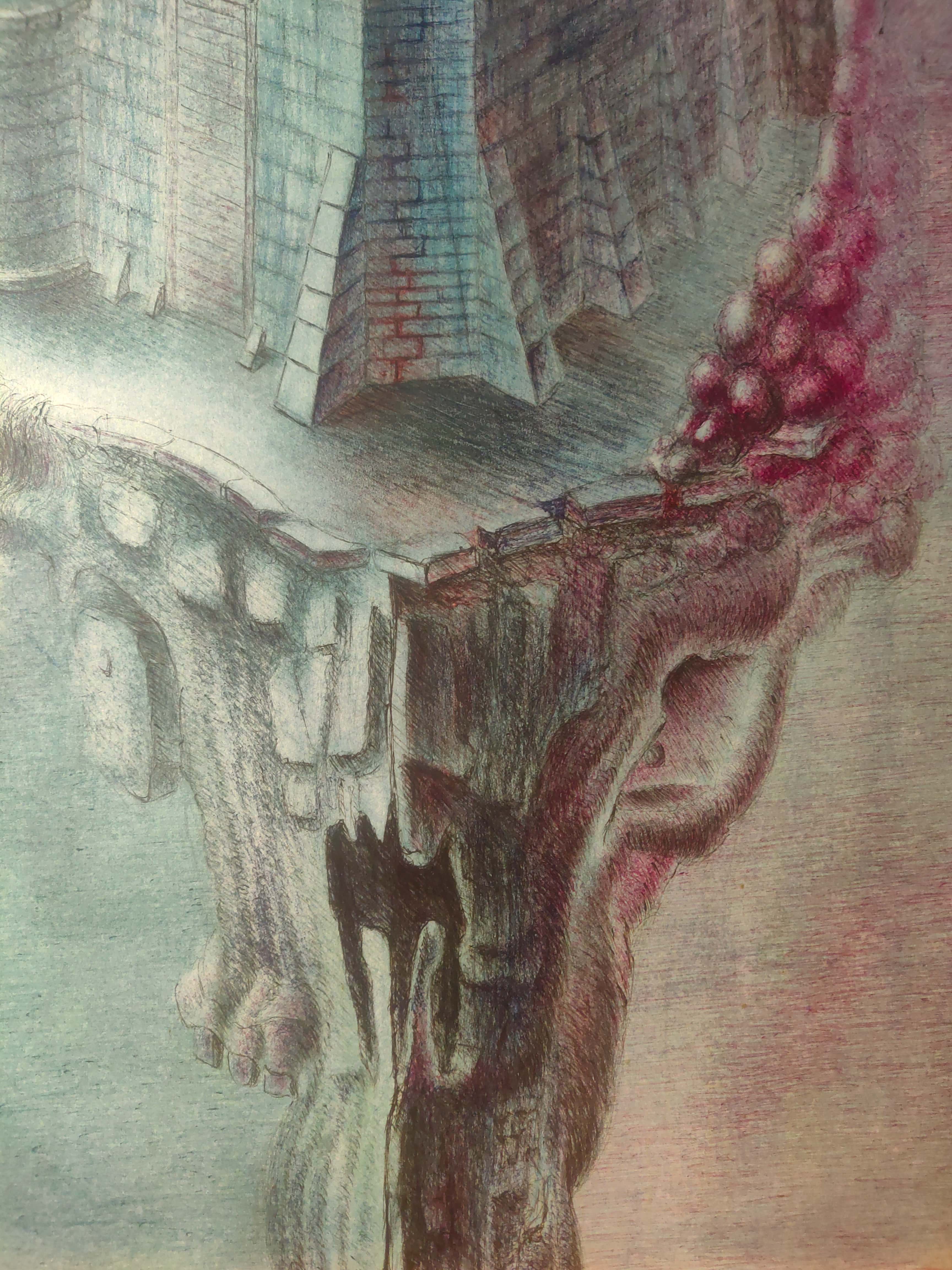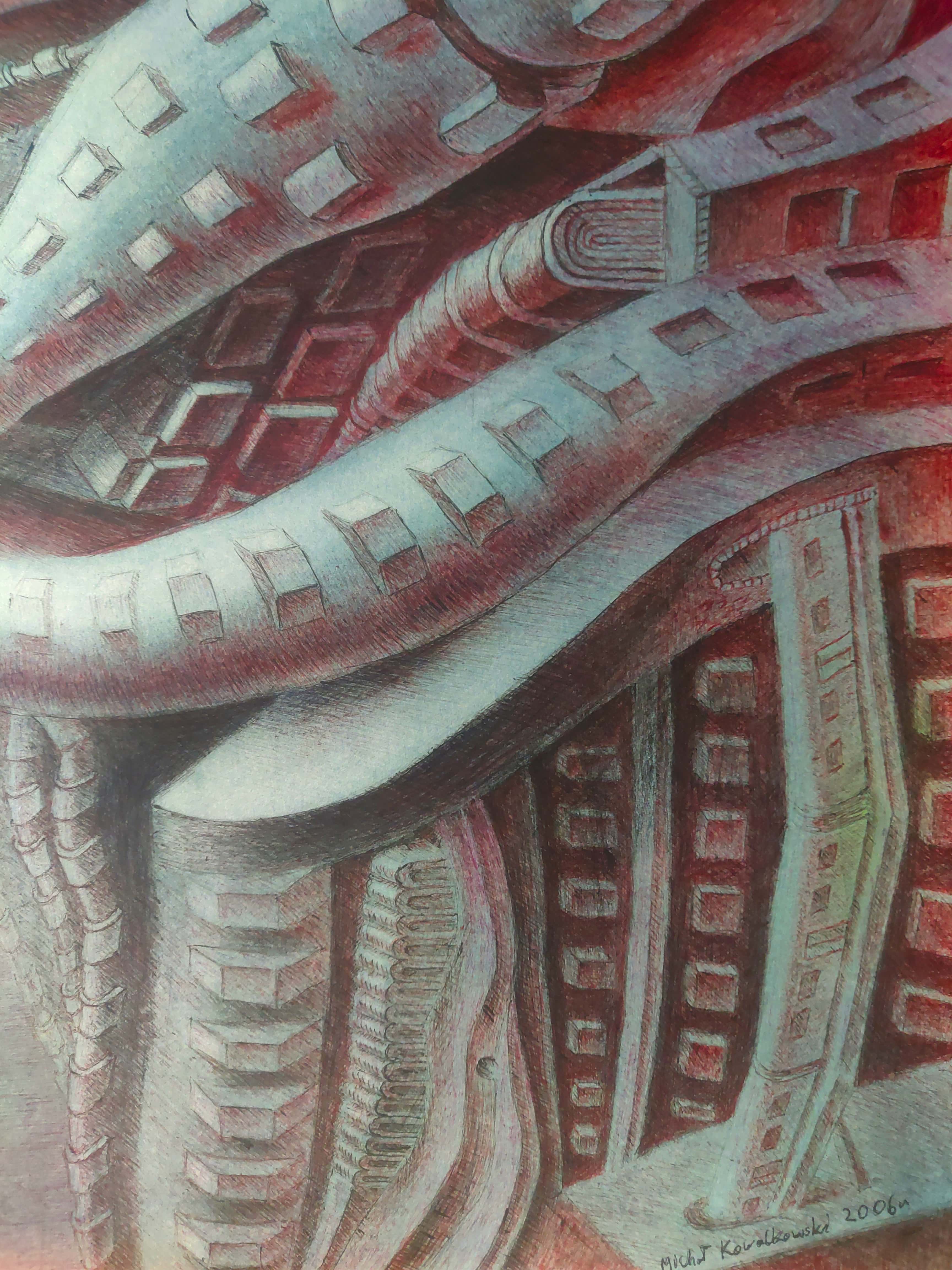 technika mieszana (długopisy, kredki, ołówek), papier, 70 x 100 cm,