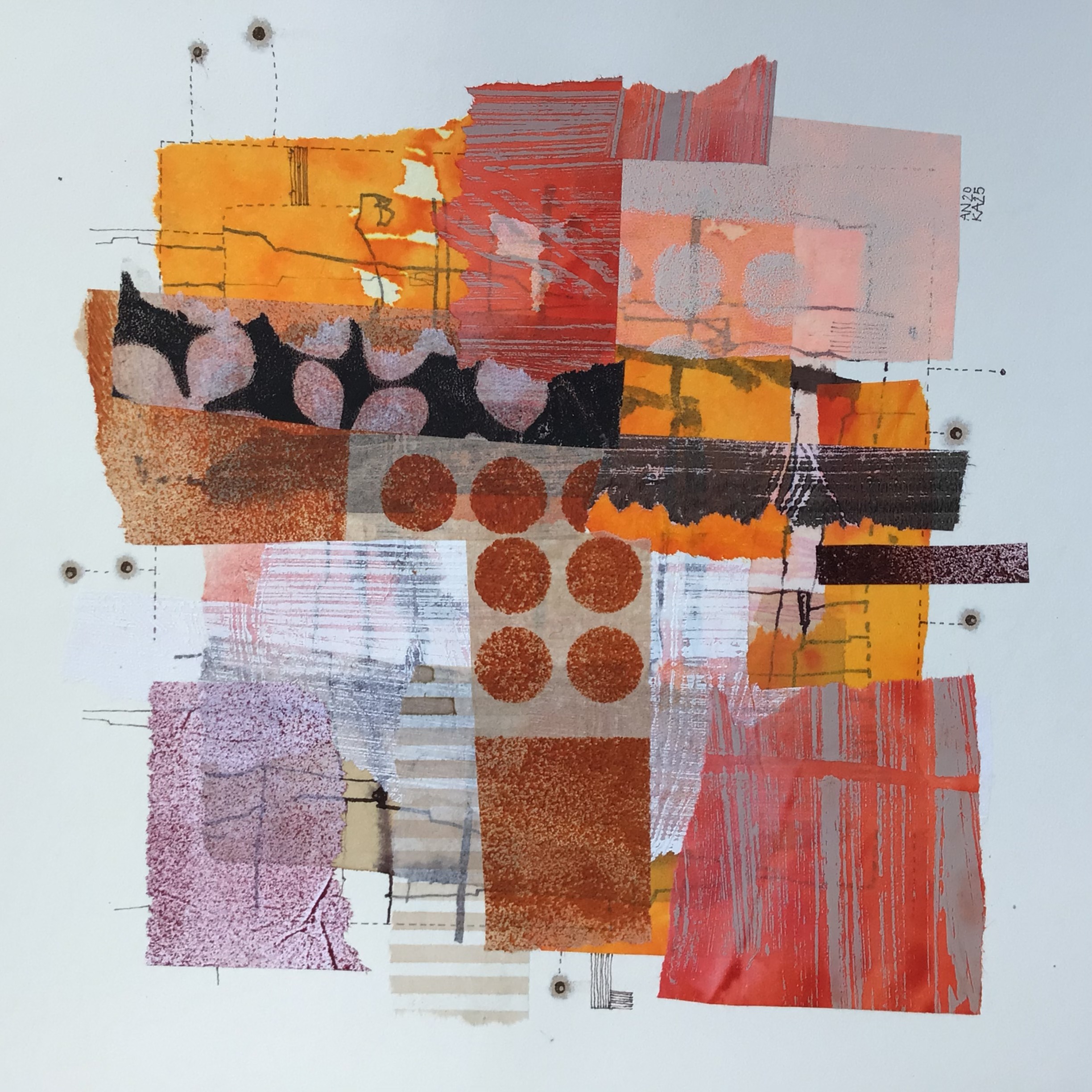 technika mieszana (akryl, akwarela, kolaż), papier, 20 x 20 cm,