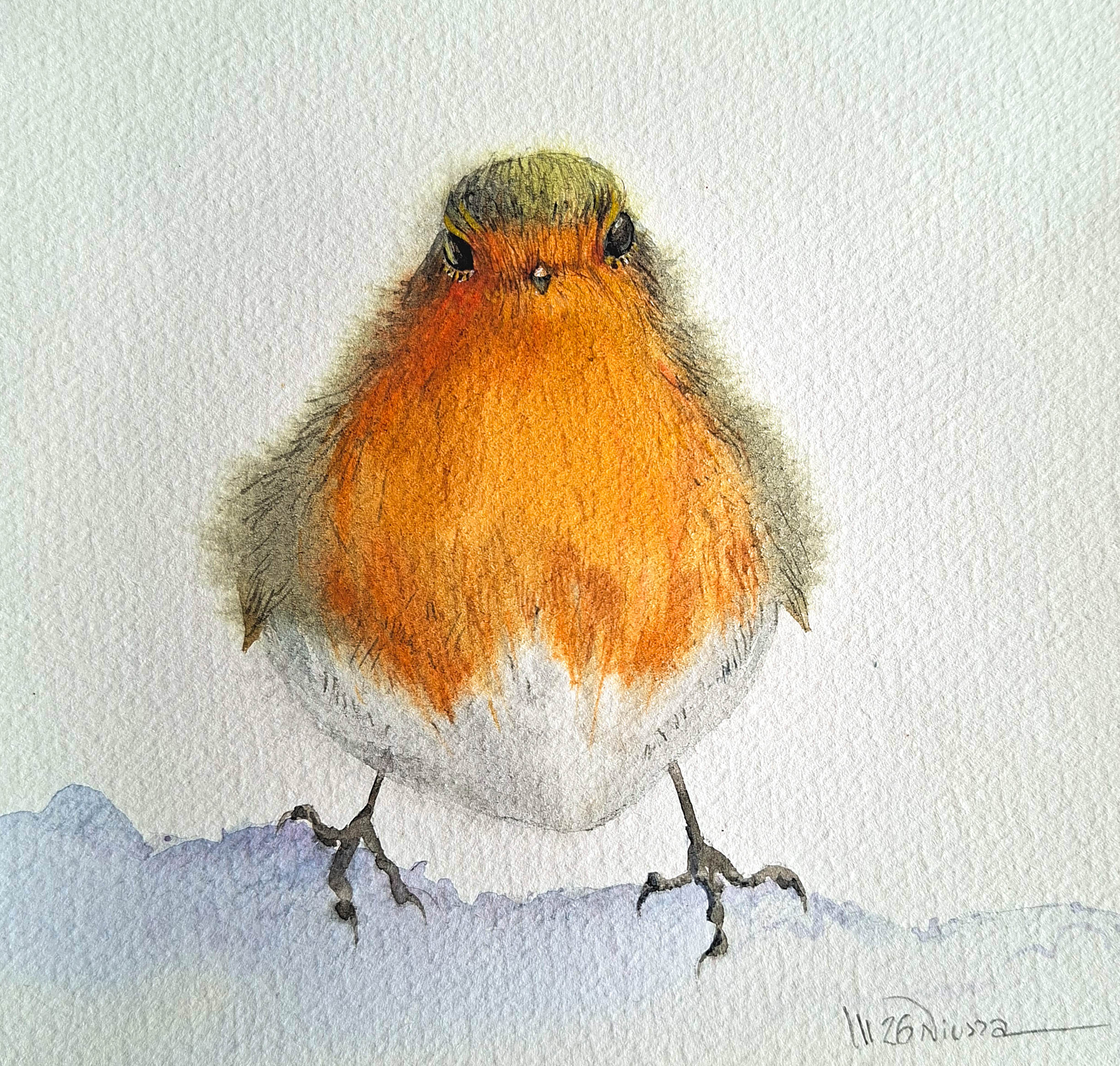 technika mieszana (piórko, ołówek, ecolina), papier, 20 x 20 cm,