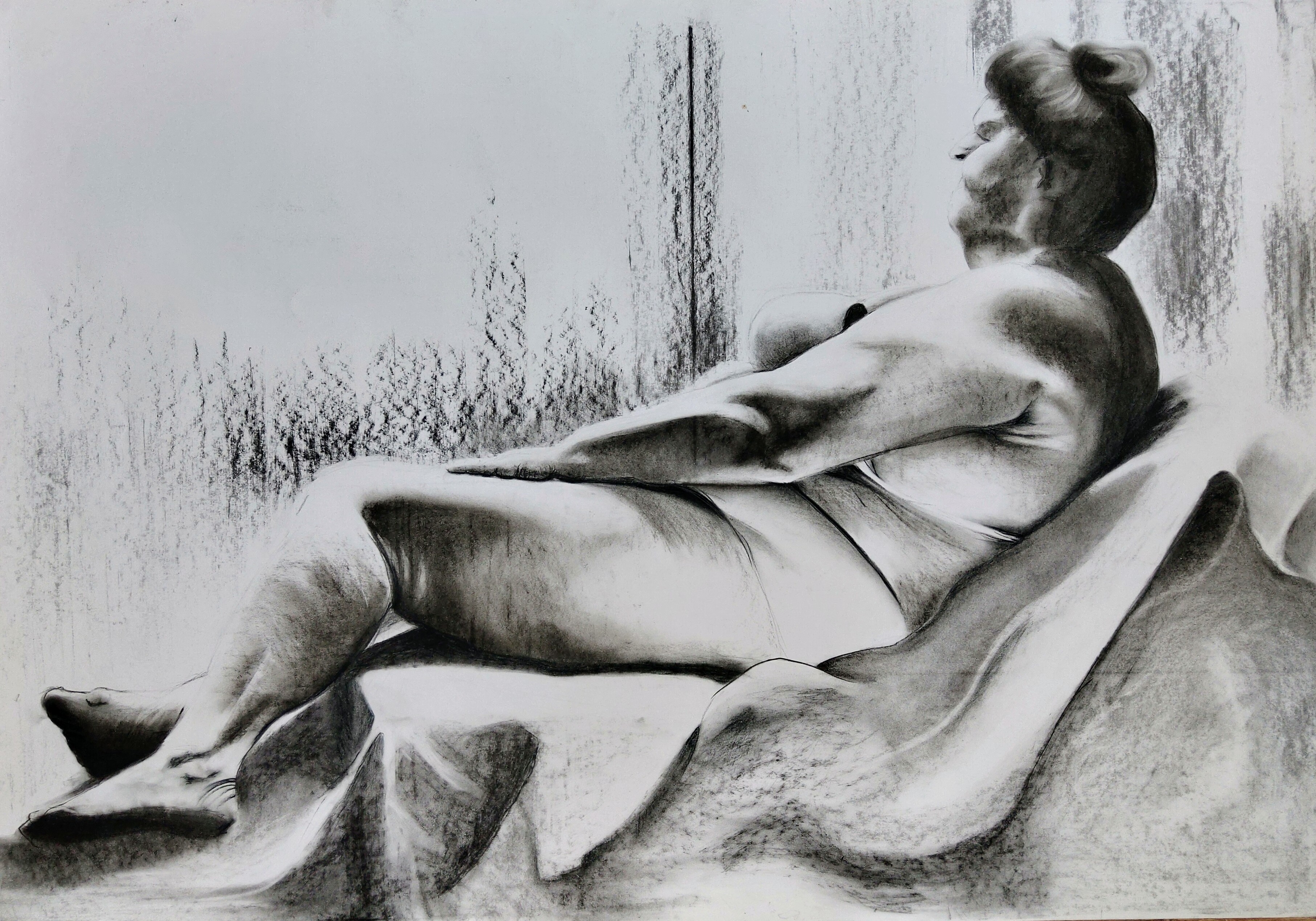 węgiel, papier, 70 x 100 cm,