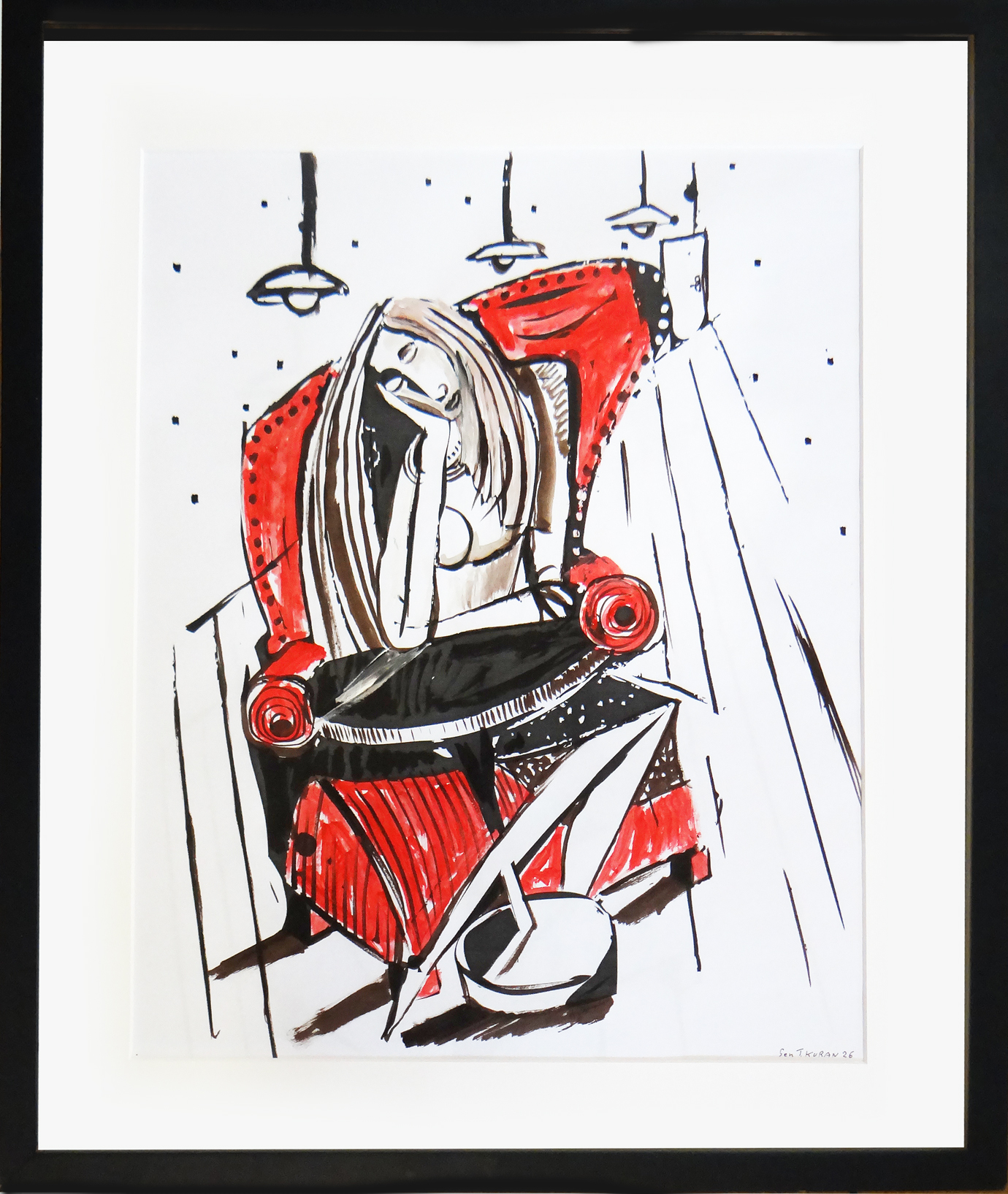 technika mieszana (tusz, akryl), papier, 44 x 35 cm, w oprawie: 59 x 50 cm,