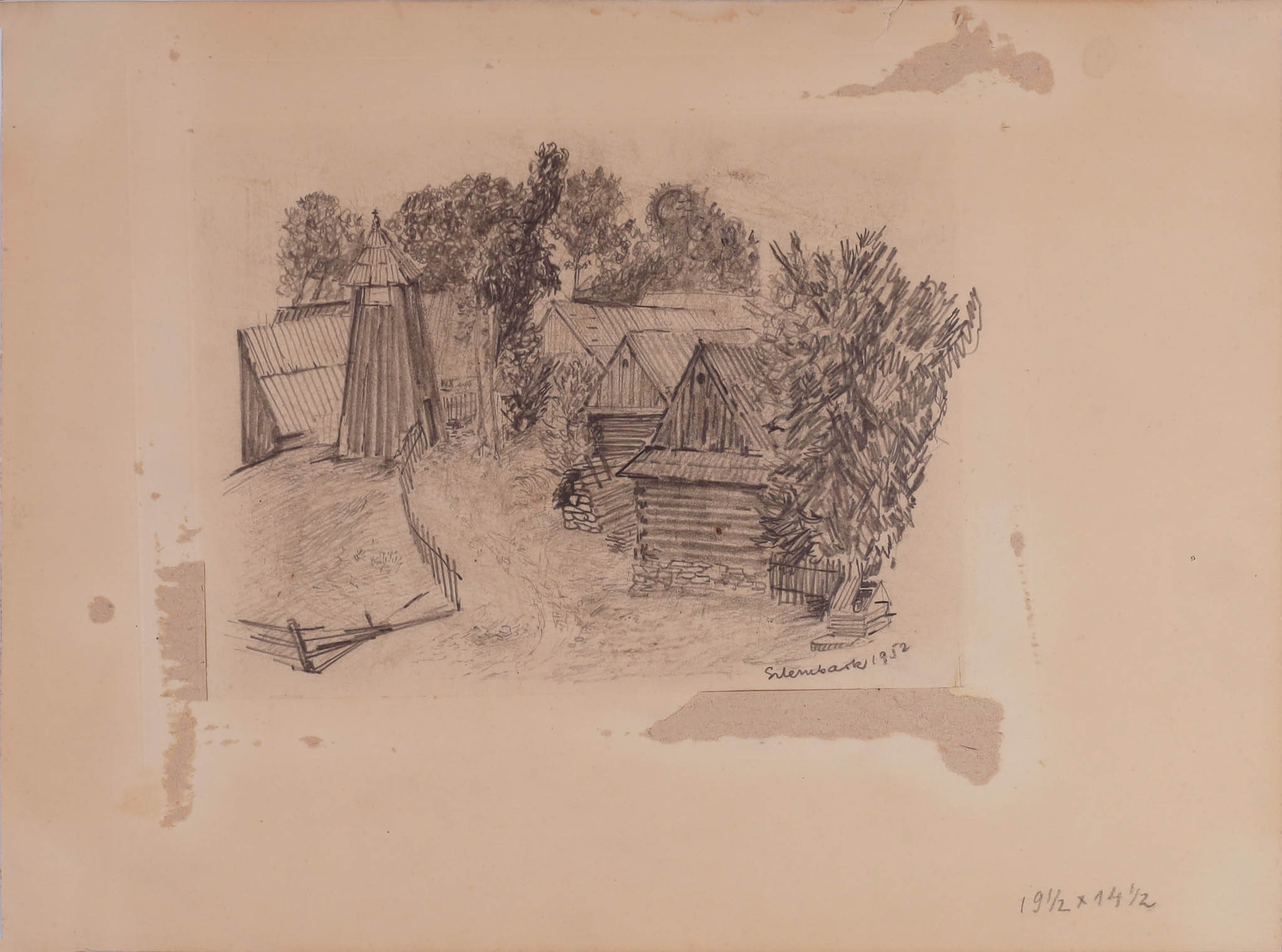 ołówek, papier, 24,2 x 32,5 cm; opisany p.d.: Szlembark 1952