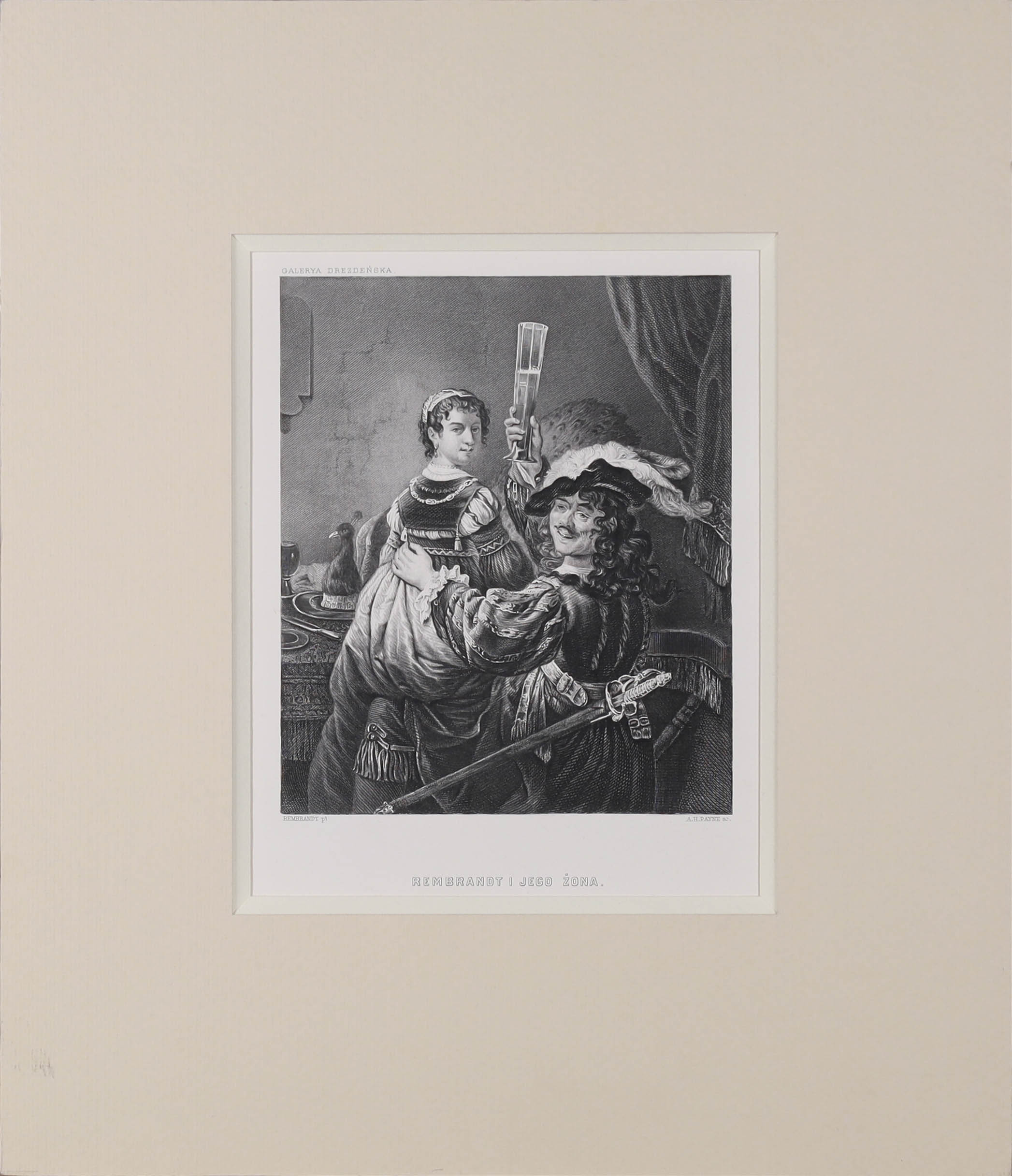 rycina wg. obrazu Rembrandta, autorem grafiki jest Albert Henry Payne (1812-1902). Praca pochodzi z tomu "Galeria Drezdeńska" wydanego...
