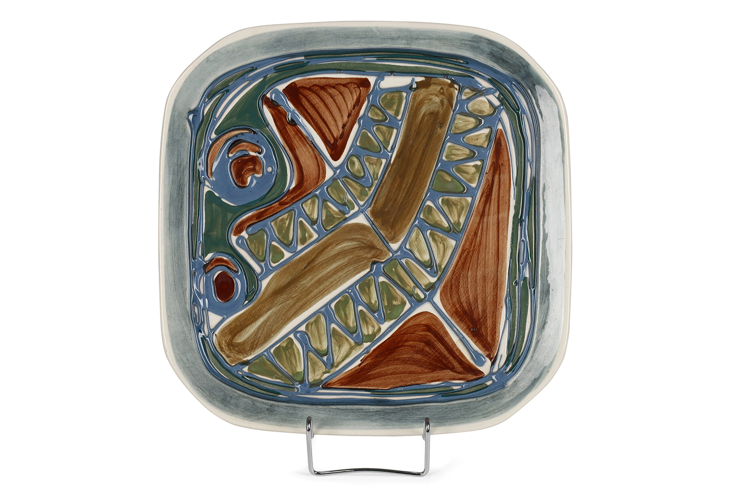 fajans szkliwiony, ręcznie malowany; 26,5 x 26,5 cm