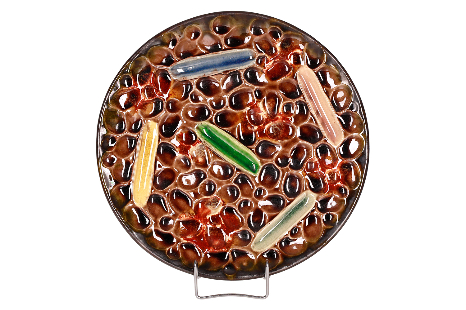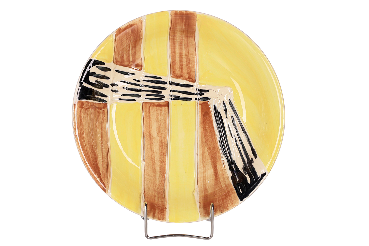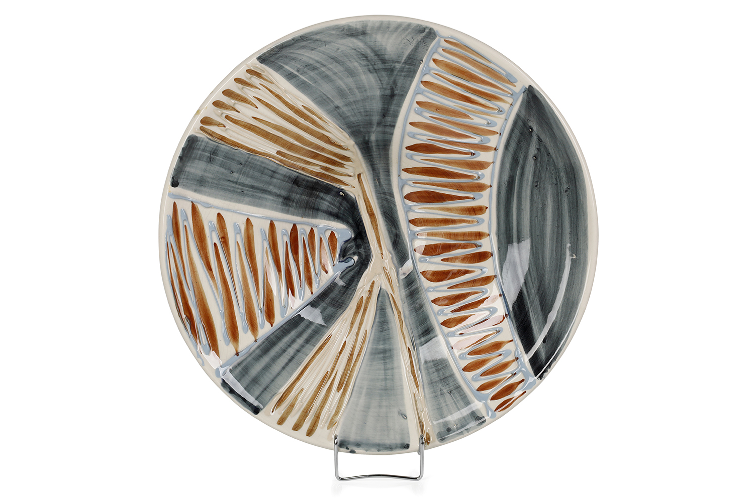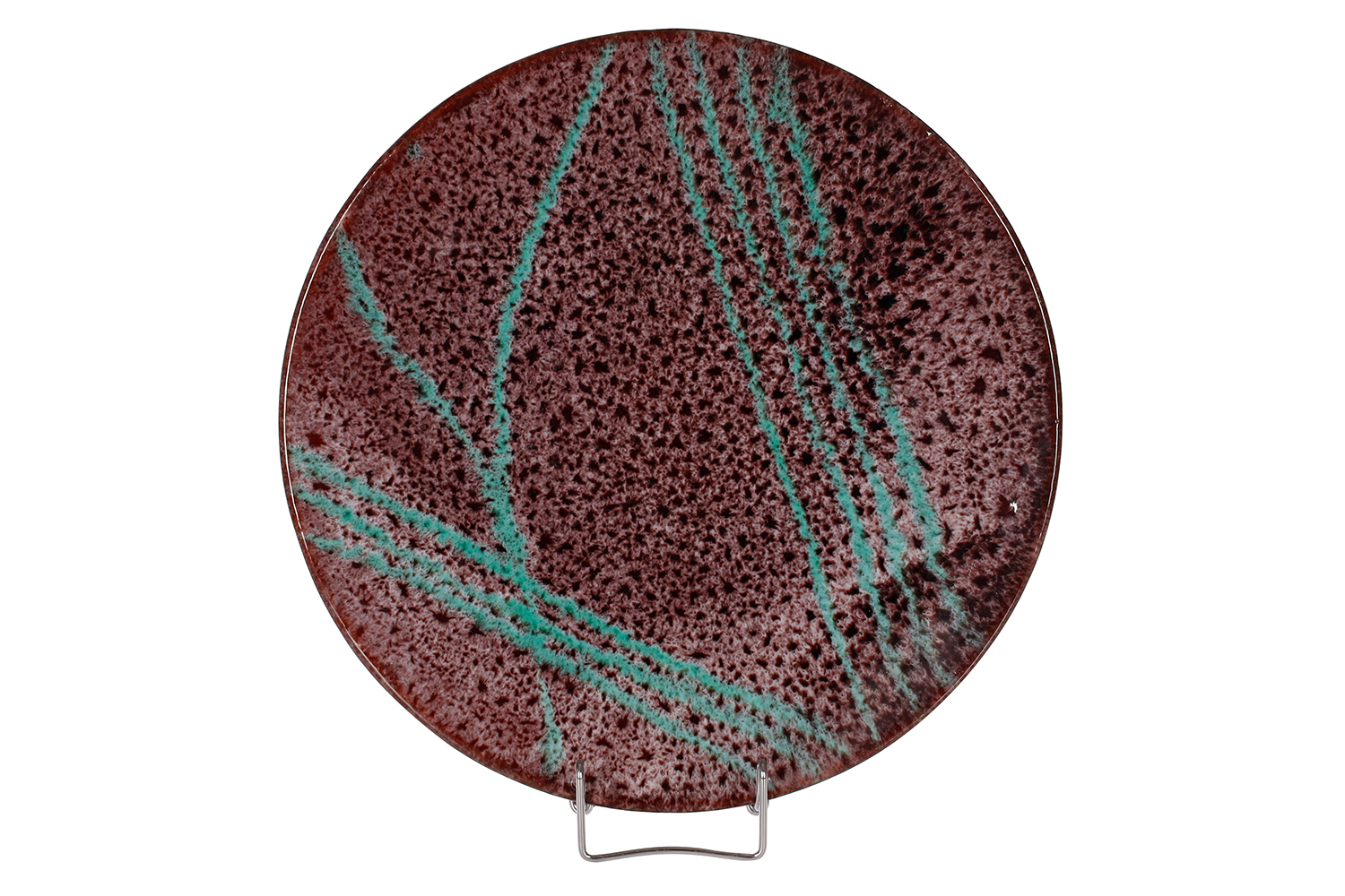 fajans ręcznie malowany, szkliwiony, dekoracja typu "kora"; średn. 23,5 cm