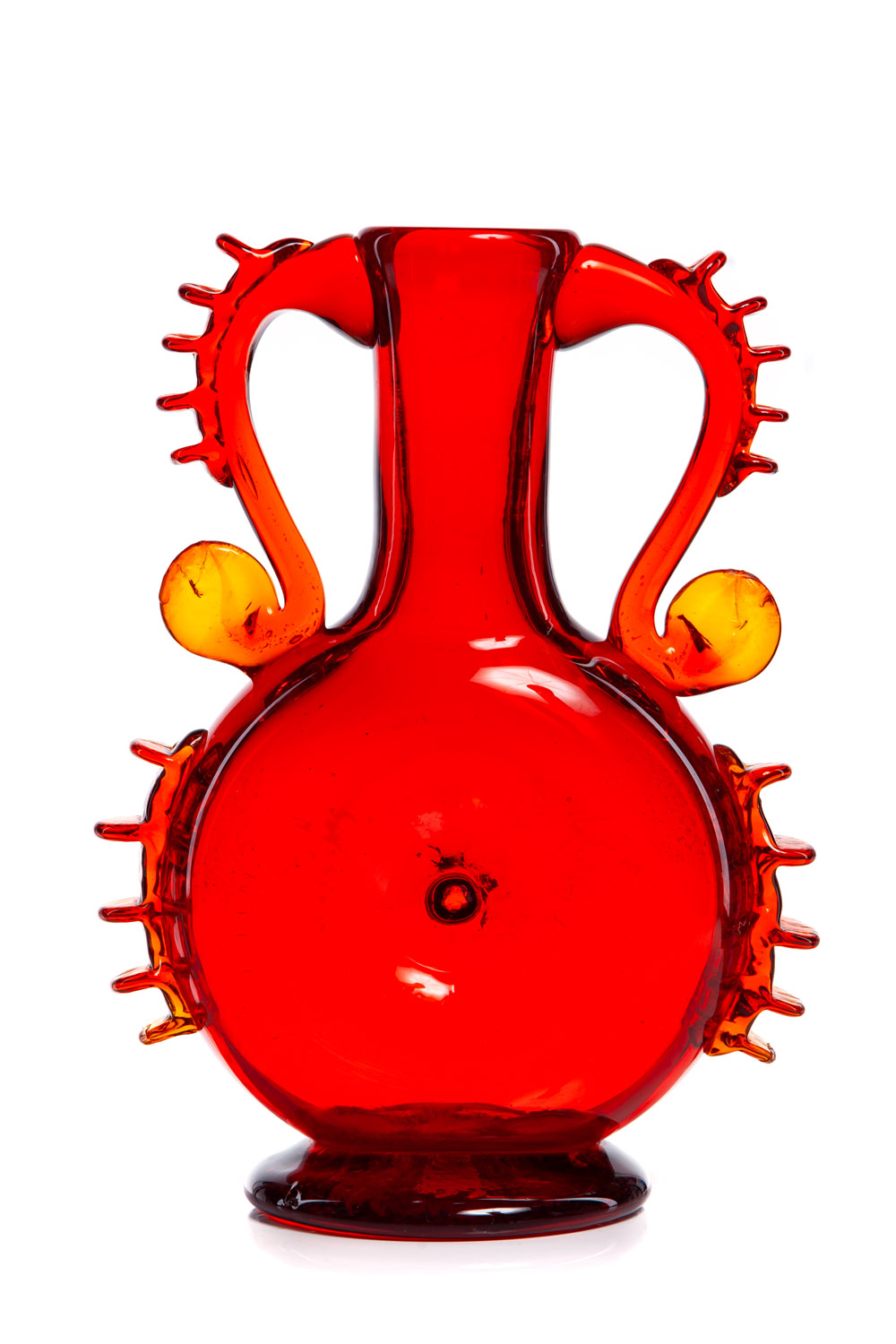 szkło barwione w masie na czerwono, ręcznie formowane; 24 cm
