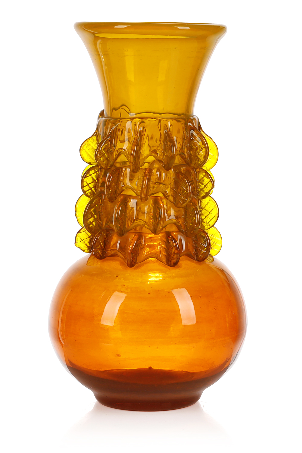 szkło barwione w masie,ręcznie formowane, wys: 24,5 cm