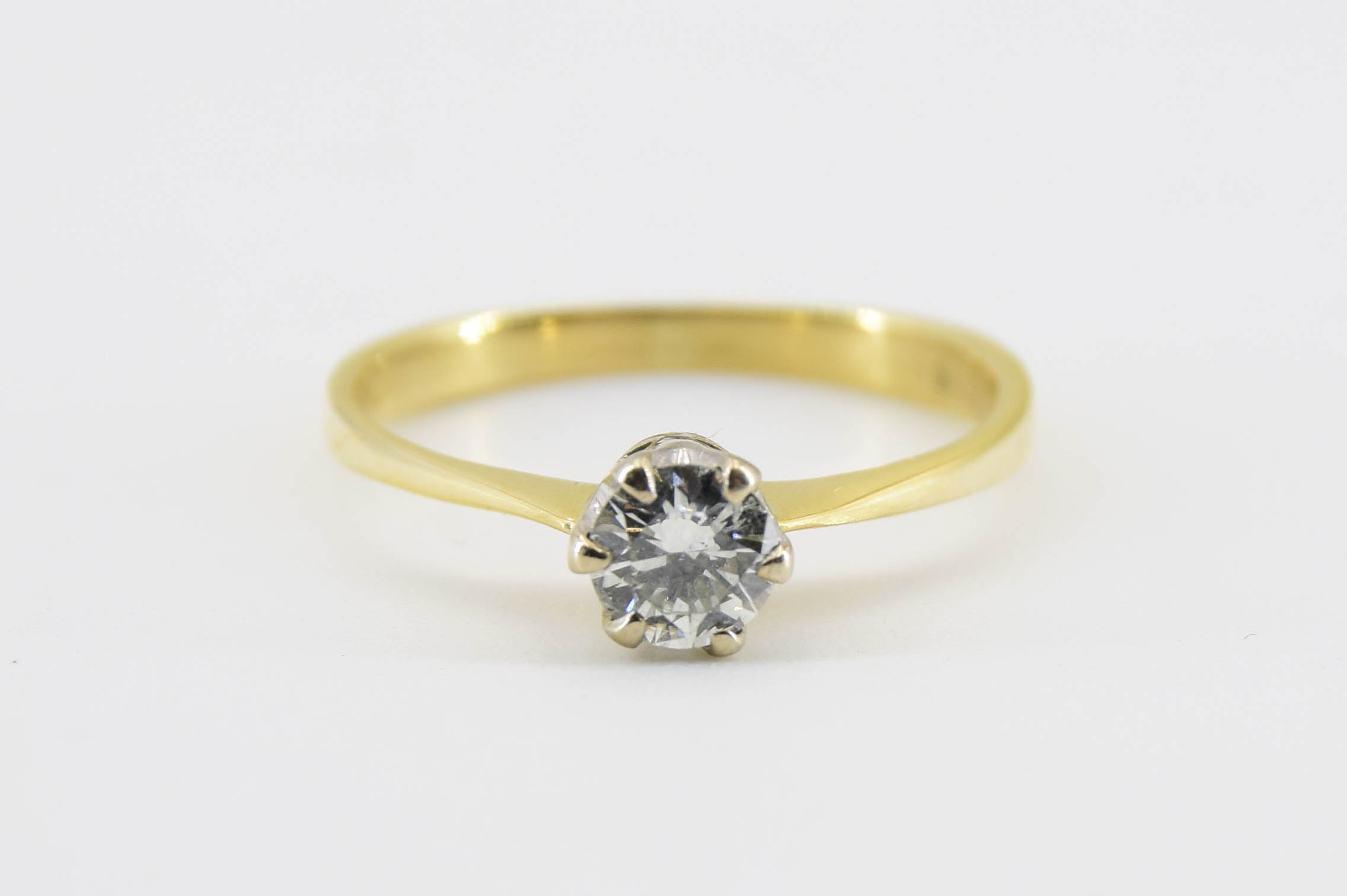 złoto pr. 0.750, masa całkowita 2.000 g., rozm. pierścionka 12.5.