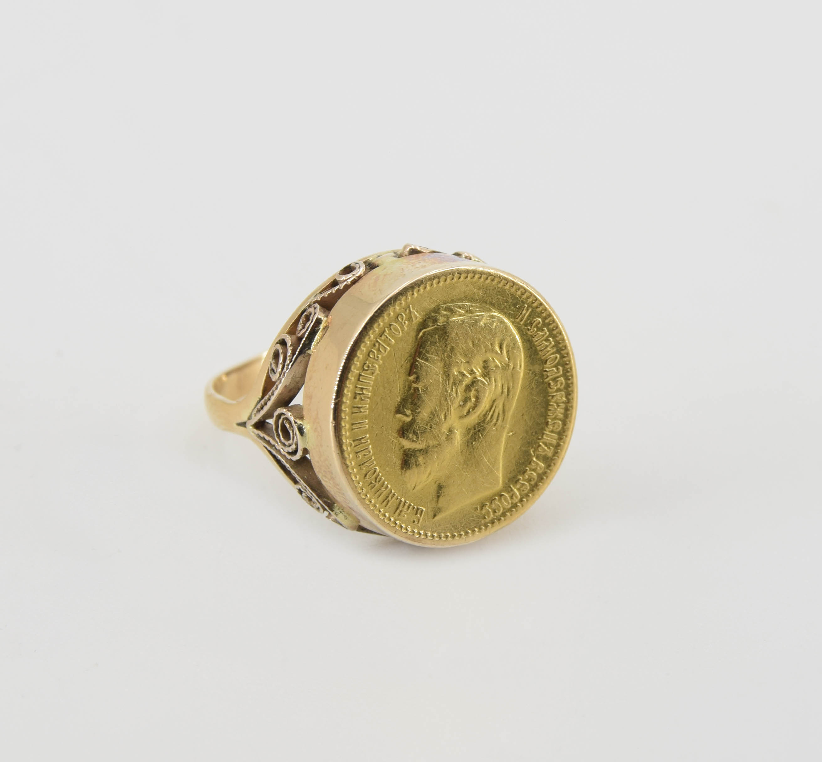 moneta carska o nominale 5 rubli z 1898 roku w ażurowej oprawie, moneta złoto pr. 0.900,
