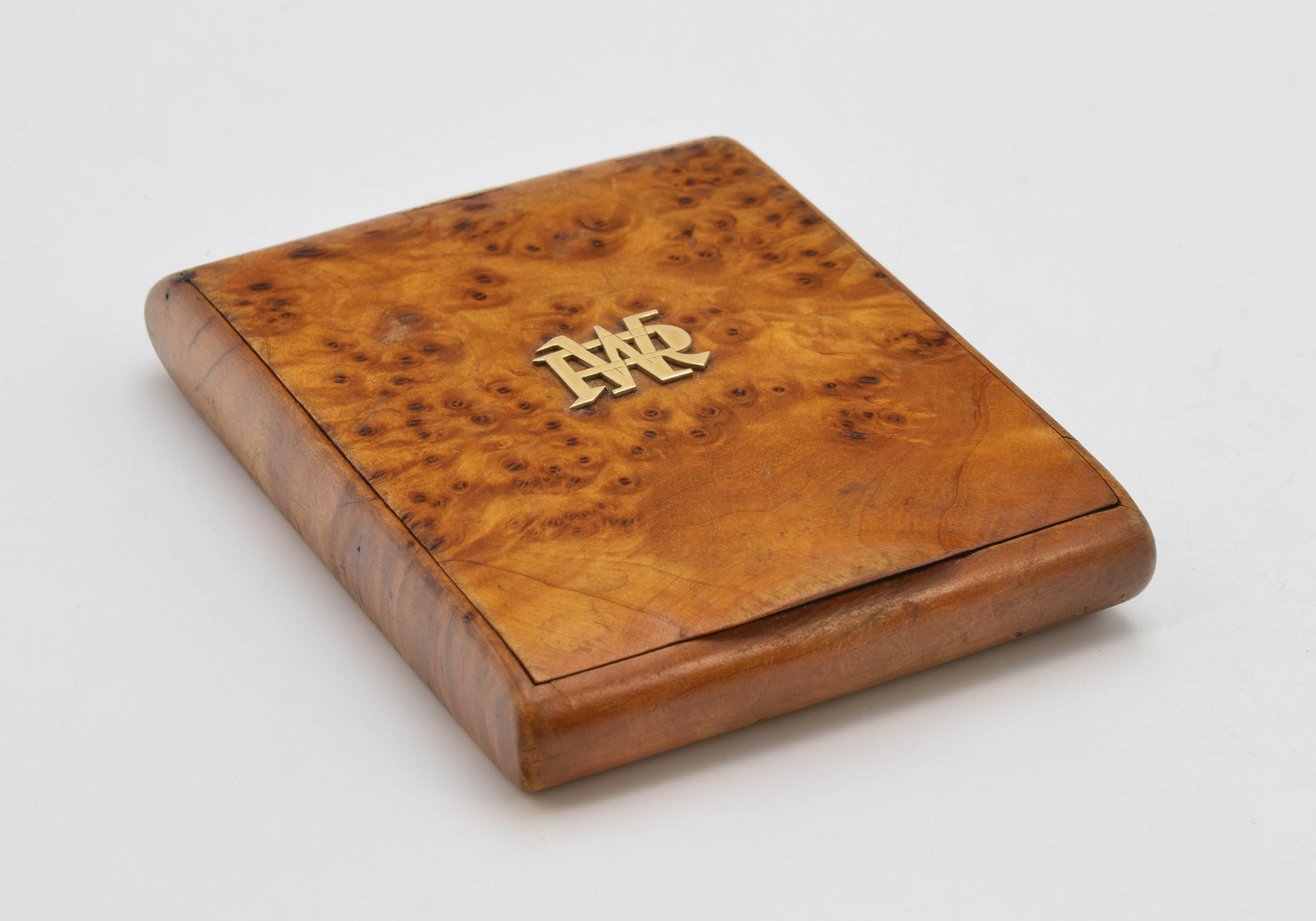 brzoza korelska, monogram - złoto pr. 0.585, wys. 1,5 cm, szer. 7cm, głęb. 9,5 cm.