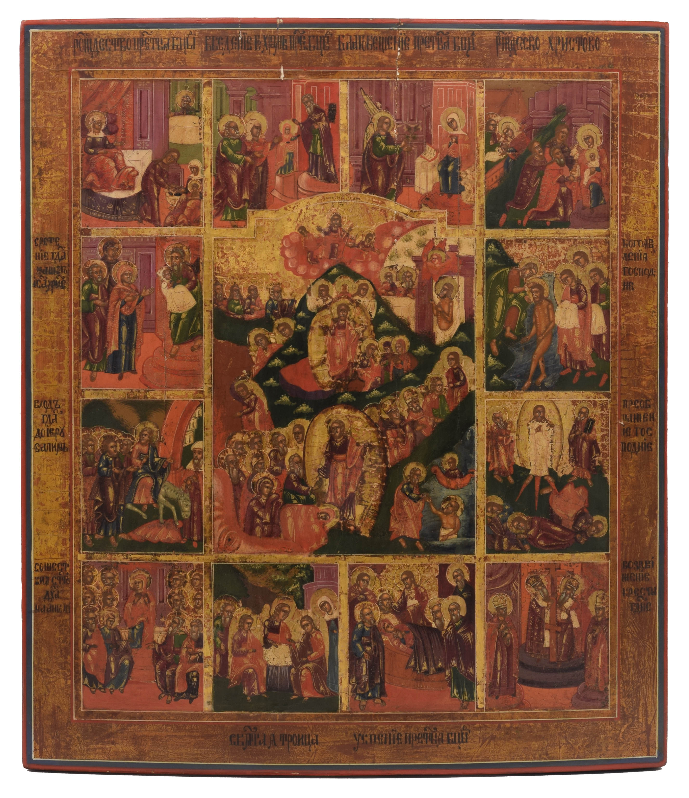 tempera, deska, podkład kredowo-gipsowy; 44,8 x 36,7 x 2,5 cm.