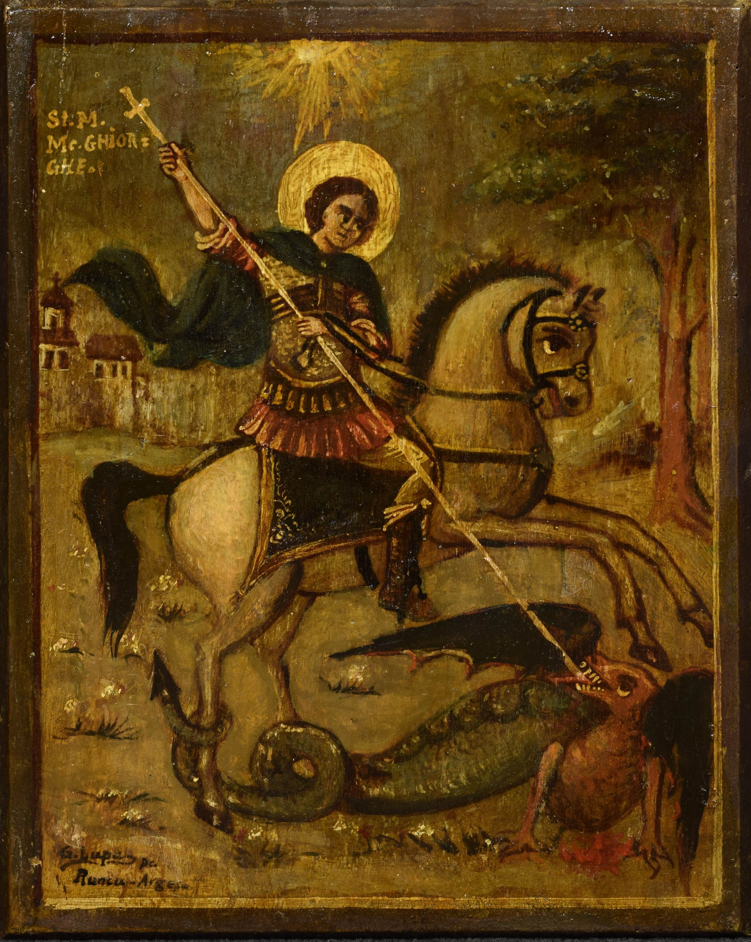 w dolnej strefie pola ikony, po lewej, podpis „G. Lupu pc. Runcu-Arges“. Sygnatura - G. Lupu.